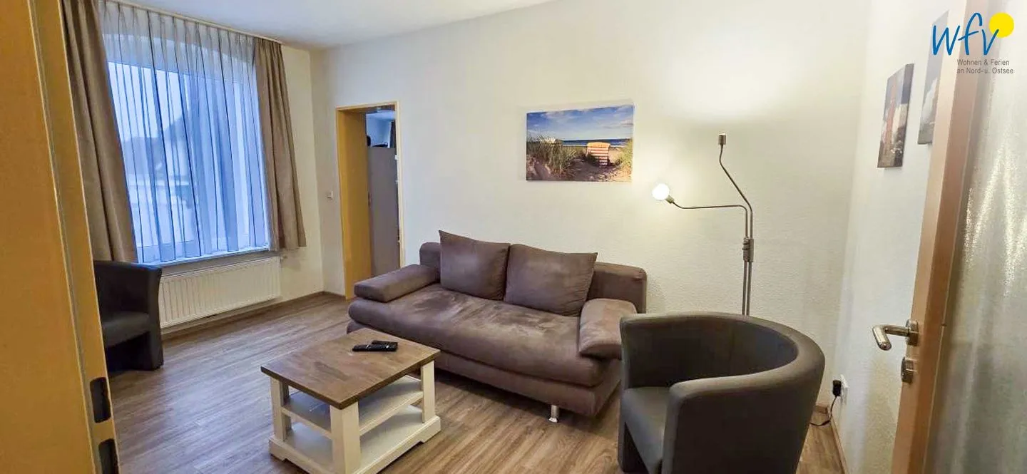 Nach dem Badetag oder der Fahrradtour können Sie im Wohnraum mit Sofa, Sesseln und TV den Urlaubstag entspannt ausklingen lassen. Zum Surfen vom Smartphone empfangen Sie freies WLAN.