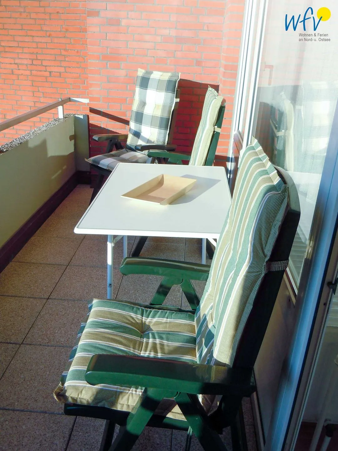Vom Wohnzimmer aus gelangt man auf den überdachten Westbalkon, von dem Sie einen herrlichen Blick auf den Alten Leuchtturm und die Wiesen haben. Er eignet sich perfekt zum Sonnenbaden, zum Lesen oder einfach nur zum Relaxen.
