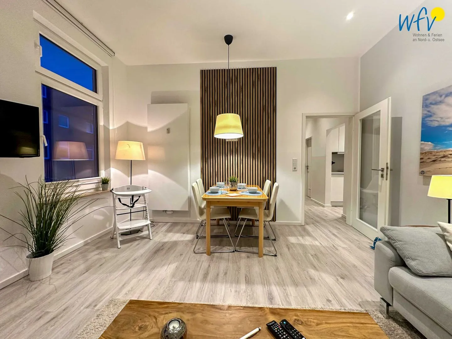 Ob nach dem Strandtag oder nach Feierabend - der Wohnraum mit bequemer Couch, TV (mit Fire TV Stick), HiFi-Anlage und freiem WLAN lädt zum ausgiebigen Relaxen ein! Hier können Sie entspannt einen guten Film schauen, Musik hören oder im Netz surfen.