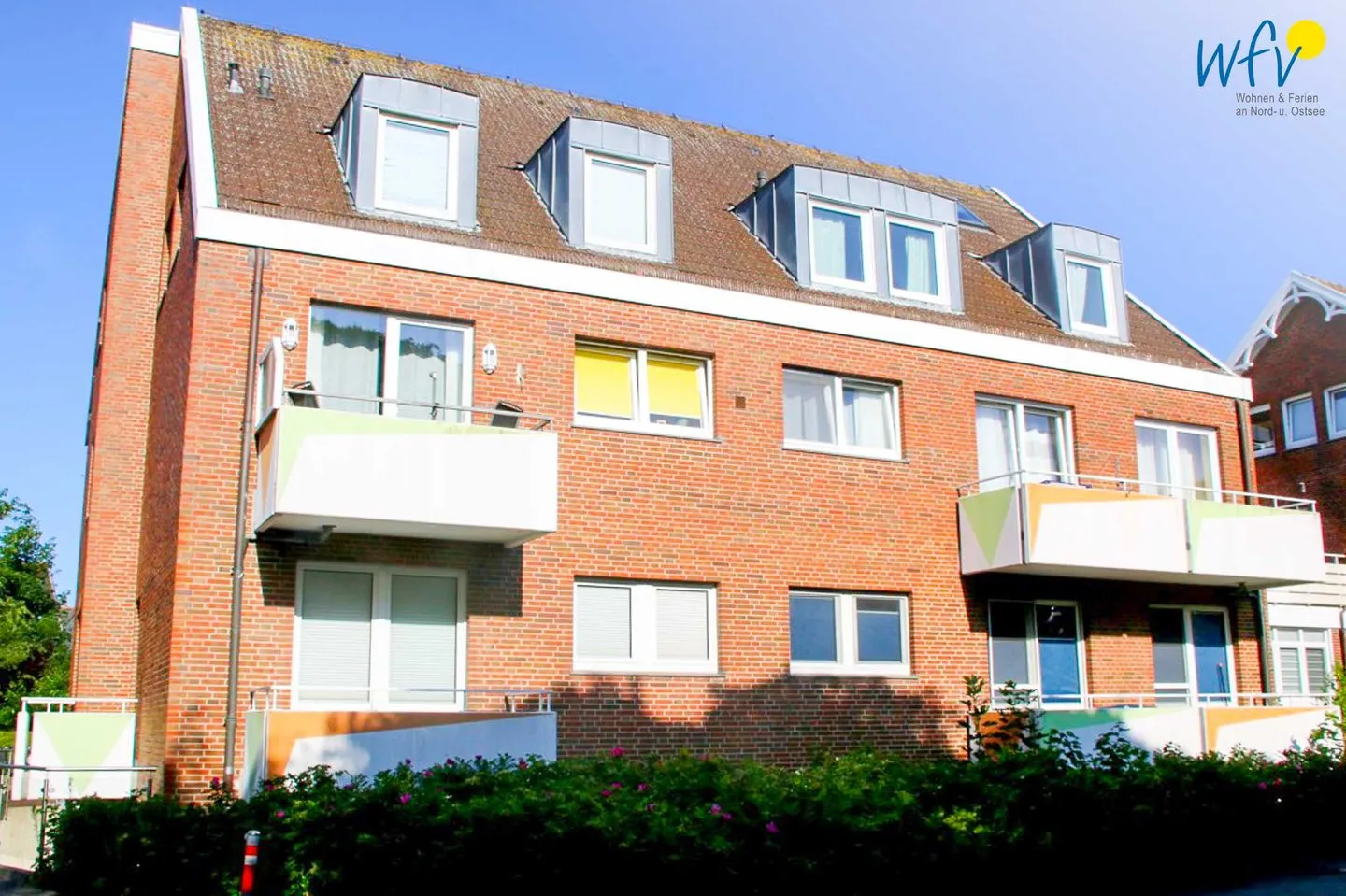 Das Highlight der Ferienwohnung sind zwei Balkone, die Ihnen entspannte Stunden an der frischen Nordseeluft garantieren. Hier können Sie in Ruhe ein gutes Buch lesen oder einfach nur abschalten - ein herrliches Urlaubsgefühl! Der hauseigene Gemeinschaftsgarten lädt zum Verweilen im Grünen ein.