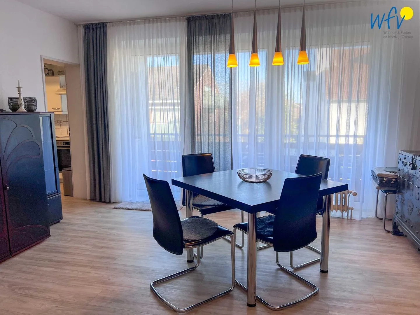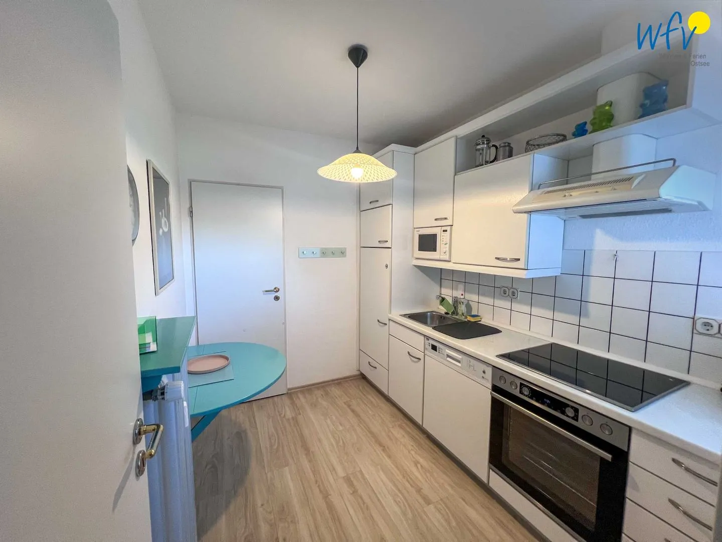 Bereits beim Ferienfrühstück beginnen Sie den Urlaubstag mit einem schönen Ausblick in die Umgebung. In Gedanken wird schon die Badetasche gepackt oder der Rucksack für den Strandspaziergang. Warme Frühstücksbrötchen, kleine Snacks für den Ausflug und leckere Mahlzeiten lassen sich in der gut ausgestatteten separaten Küche zubereiten. Ein 4-Platten-Ceranherd, ein Backofen, eine Mikrowelle und ein Geschirrspüler ermöglichen Ihnen eine bequeme Selbstverpflegung sowie gemeinsames Kochen und Klönen.