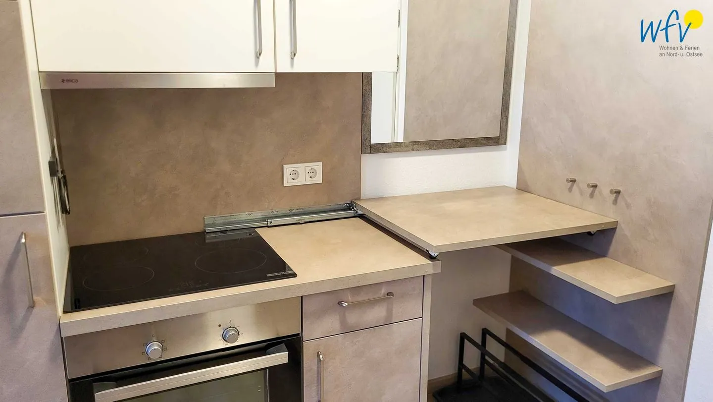 Ob warme Frühstücksbrötchen, kleine Mittagssnacks oder Gerichte am Abend - in der gut ausgestatteten Küche finden Sie alles, um schnell und einfach Leckereien zu zaubern! Sie verfügt u.a. über ein Ceranfeld, einen Backofen mit Grill, eine Mikrowelle und über eine Spülmaschine. Kaffeeliebhaber finden neben der klassischen Kaffeemaschine eine Nescafè Dolce Gusto. Ihren Kaffee können Sie im Thermobecher auch gerne mit an den Strand nehmen. Für den sprudelnden Frischekick gibt es einen einen SodaStream mit zwei Glasflaschen.
