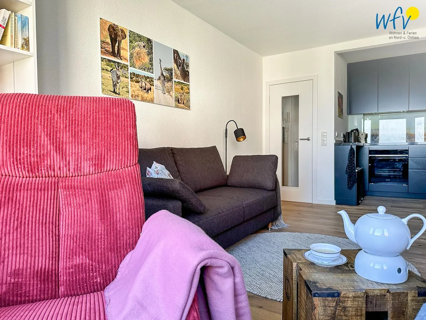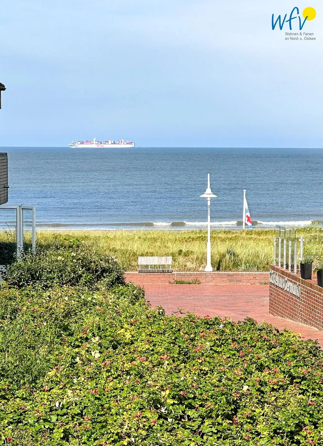 Zur Entspannung nach dem Strandtag oder der Wattwanderung lädt der helle Wohnraum mit Sofaecke und TV (Magenta TV und RTL plus frei nutzbar) ein. Oder Sie genießen im Relaxsessel am Fenster den einzigartigen Meerblick auf die Wellen der Nordsee und auf die Schifffahrtswege - ein wunderbares Urlaubsgefühl!