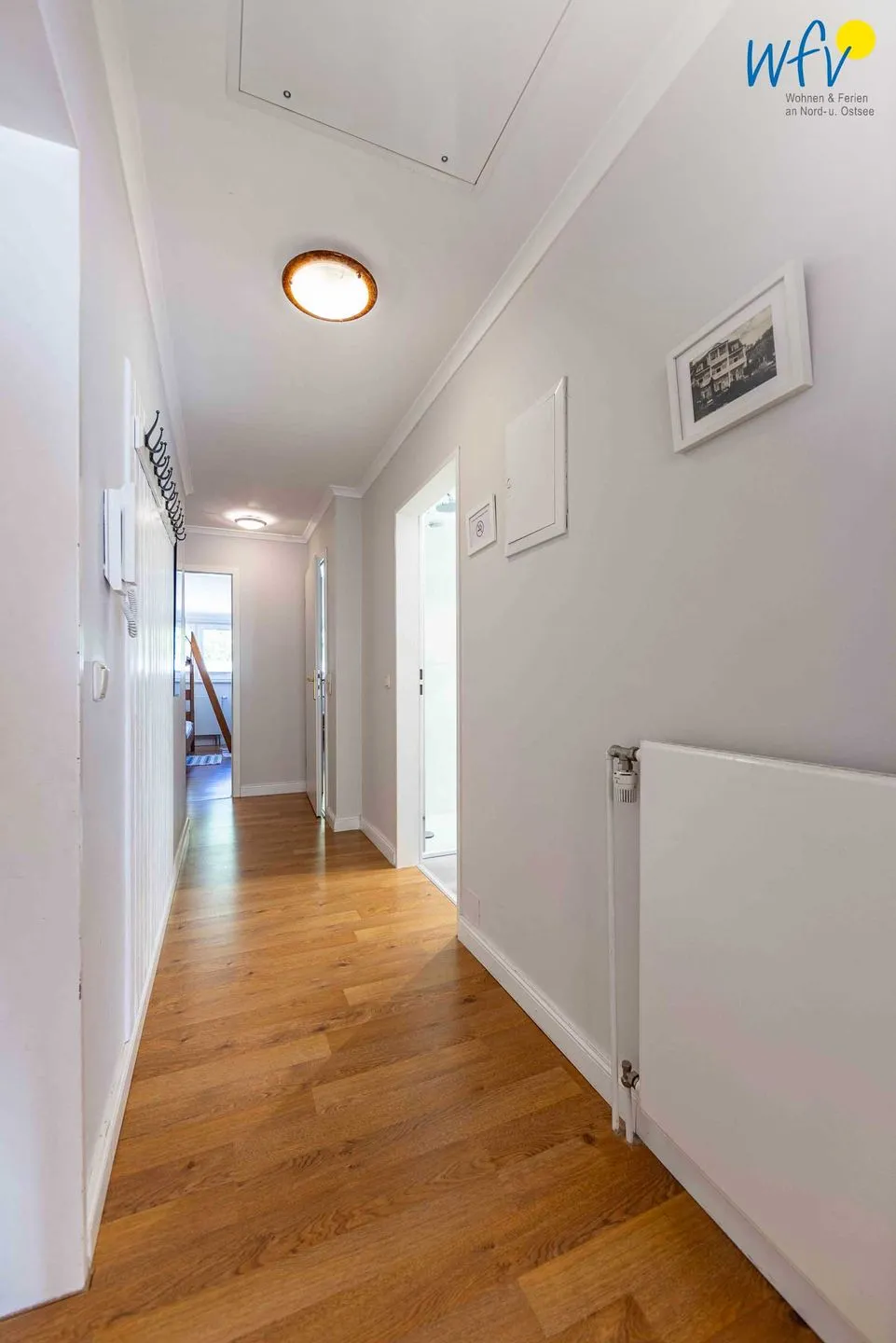 Die helle Ferienwohnung ist eine herrliche Wohlfühloase für die ganze Familie! Eine breite Fensterfront, stilvolles Mobiliar und eine optimale Aufteilung mit großzügigem Wohnraum und zwei separaten Schlafzimmern sorgen für eine besonders schöne Atmosphäre, in der Sie rundum entspannen können. Von der Ferienwohnung aus sehen Sie sogar bereits die Ostsee!
