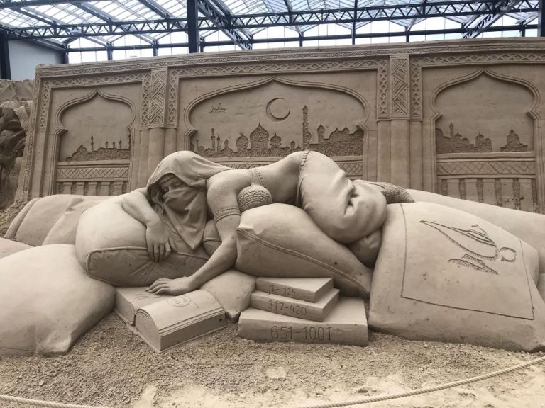 2021 erleben Sie die Sandskulpturenausstellung an einem neuen Standort, in einer vollkommen neuen Location! In einem großen Glaspalast werden Sie in ein traumhaftes Märchenland aus Sand entführt – zu den Geschichten von Rapunzel, Aschenputtel und Dornröschen, den Abenteuern von Sindbad, dem Seefahrer und vielen anderen Märchengestalten.