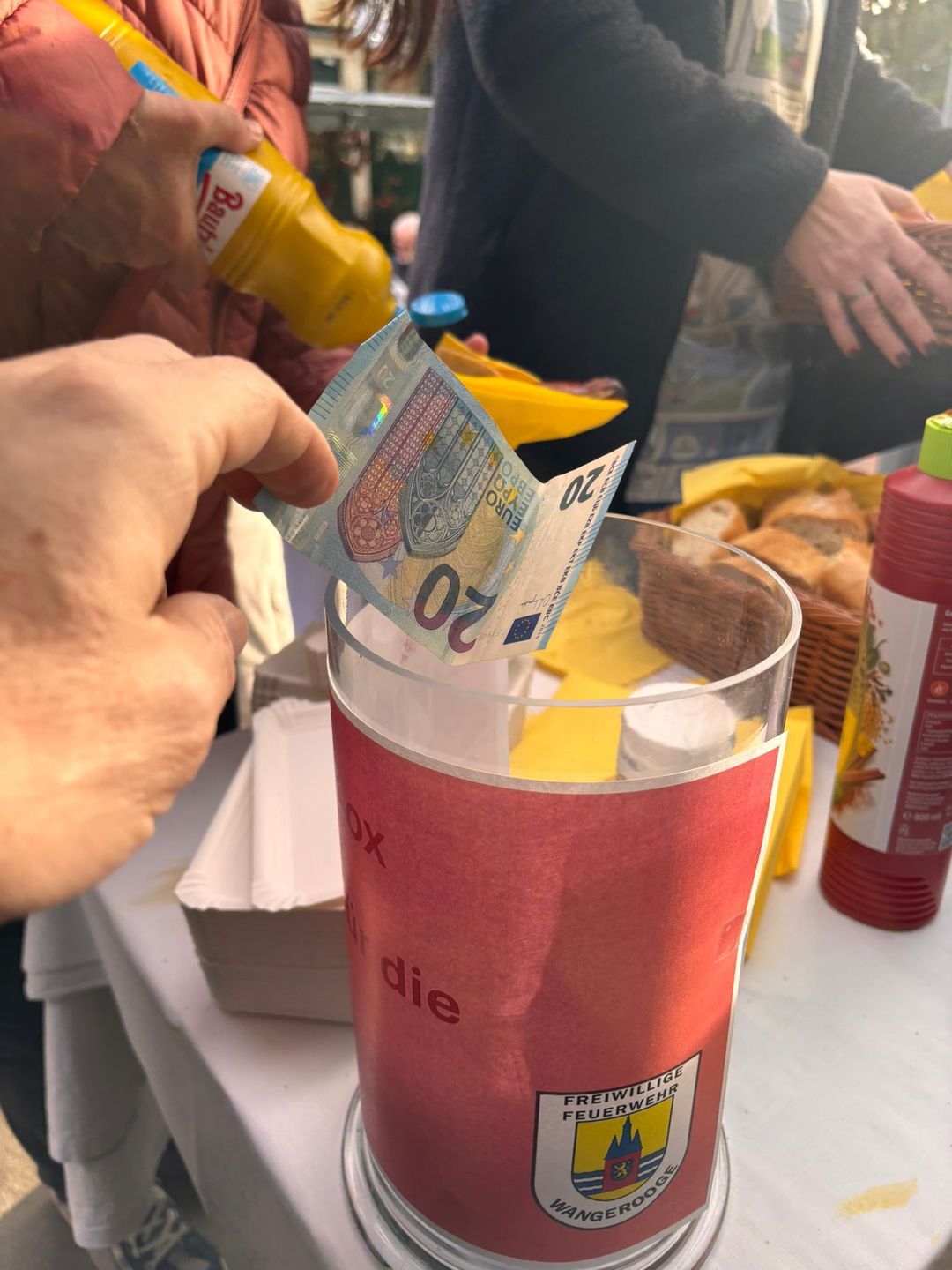 Und das alles für den guten Zweck: Es wurden fast 600 Würstchen verkauft, jede Menge Waffeln gebacken und viel Glühwein getrunken - und somit konnte die stolze Summe der gesamten Einnahmen von 1025 € an die Freiwillige Feuerwehr auf Wangerooge gespendet werden! Mit großem Dank hat diese die Spende entgegengenommen.