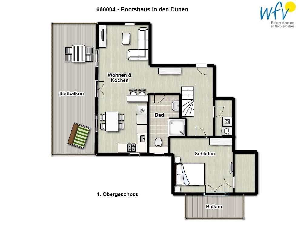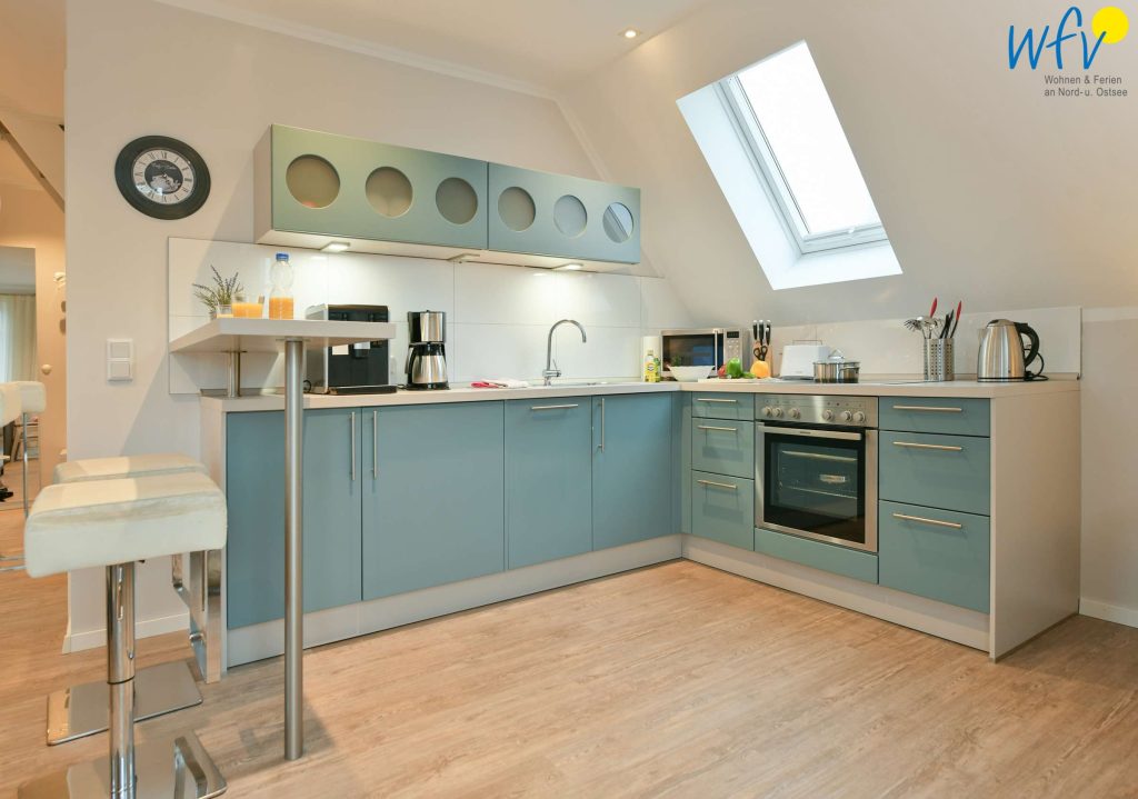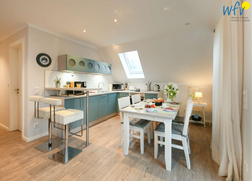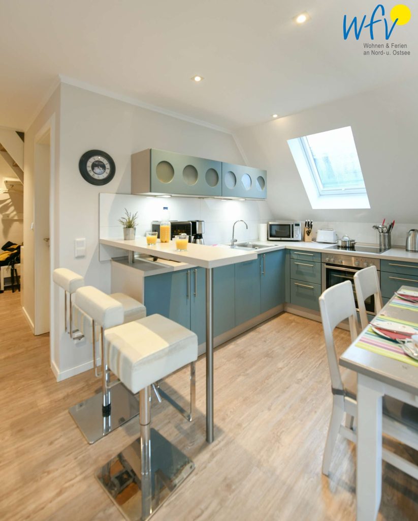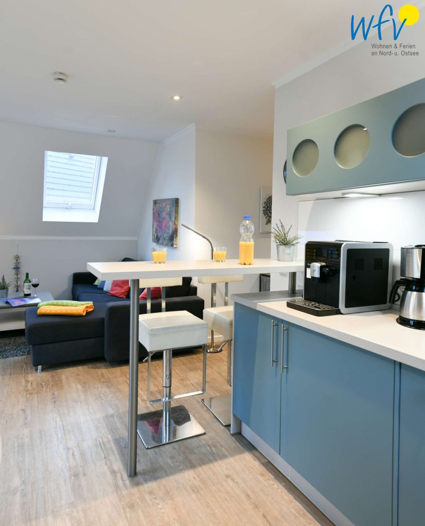 Die helle, sonnendurchflutete Ferienwohnung auf Wangerooge besteht aus einer großen Wohnküche, einem gemütlichen Wohnbereich und einem separaten...