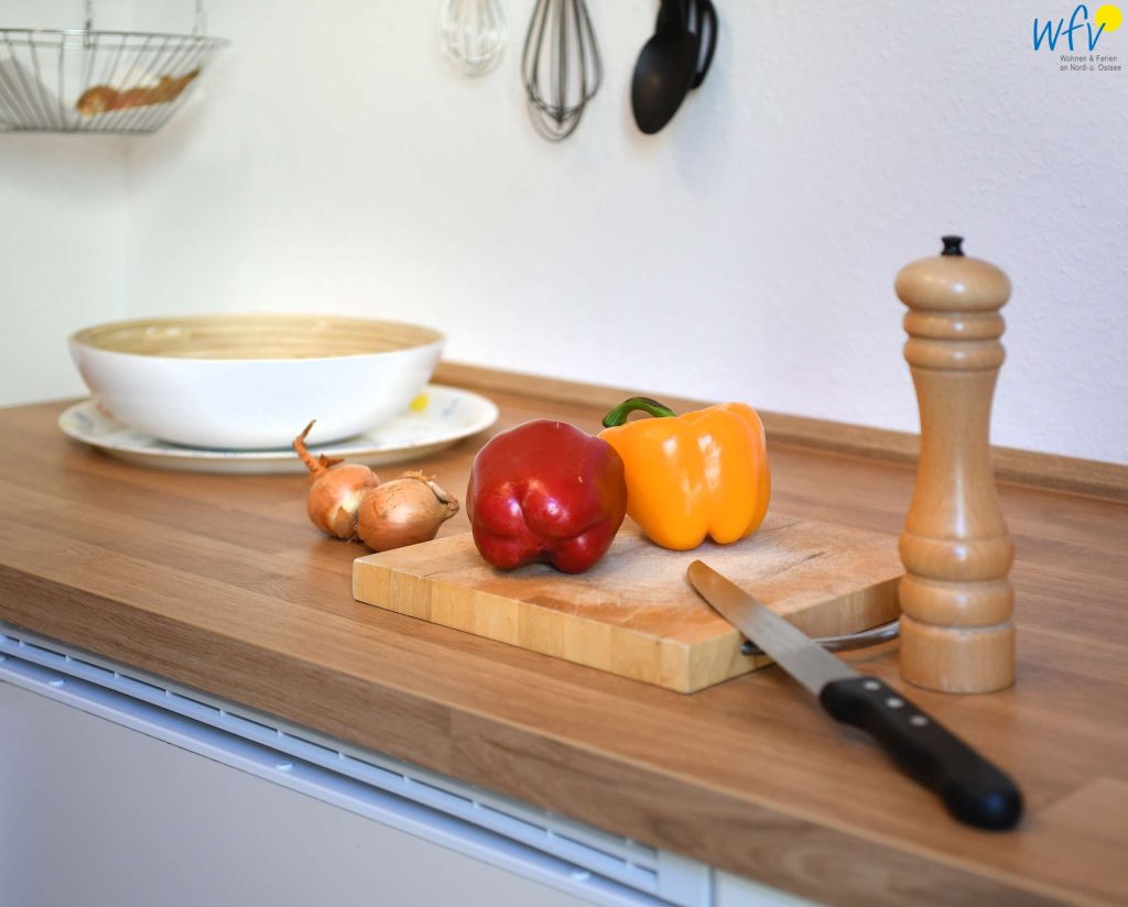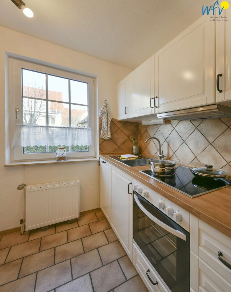 Damit Sie sich in Ihrem Urlaub auf Wangerooge bequem selbst verpflegen können, verfügt die Ferienwohnung "Kompass" über eine Küche im hübschen Landhausstil. U.a. mit Herd (Ceranfeld), Backofen, Kühlschrank mit Gefrierfach, Geschirrspüler, Kaffeemaschine, Senseo-Kapselmaschine (zusätzlich), Wasserkocher, Toaster, Mixer und Eierkocher. Zudem steht Ihnen ein SodaStream Wassersprudler zur Verfügung.
