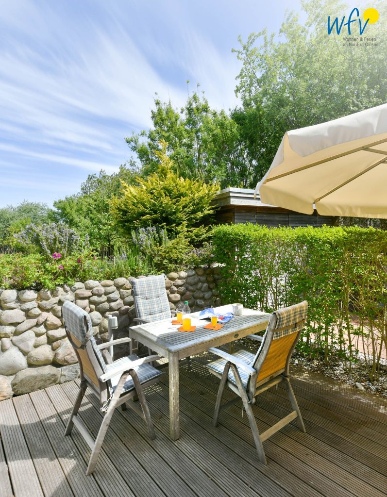 Ein heller Wohnbereich mit integrierter Küche, Essplatz und gemütlicher Sitzecke sowie zwei separate Schlafzimmer, ein modernes Duschbad und eine sonnige Terrasse machen Ihren Urlaub zum Genuss!
