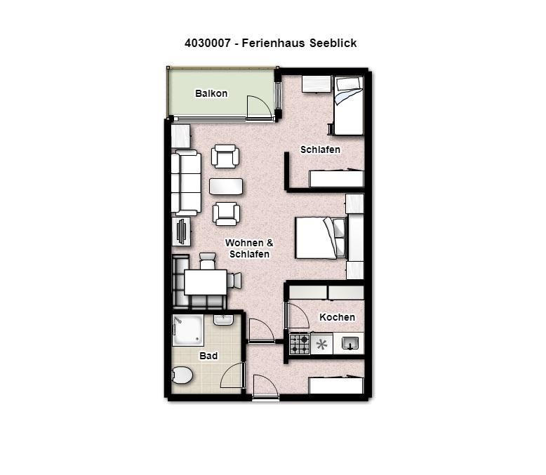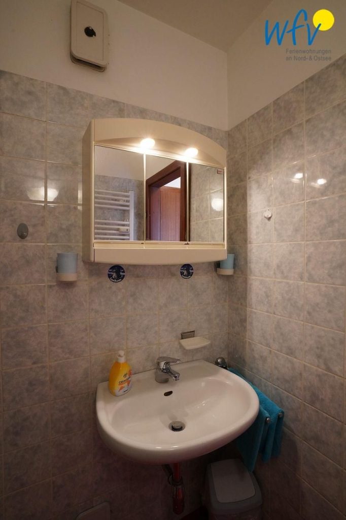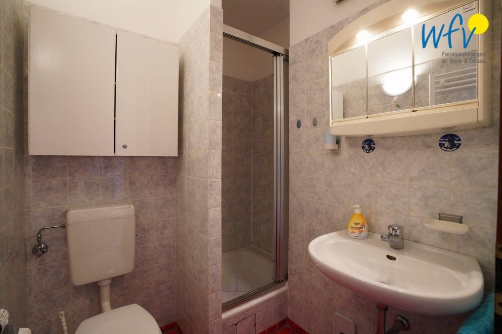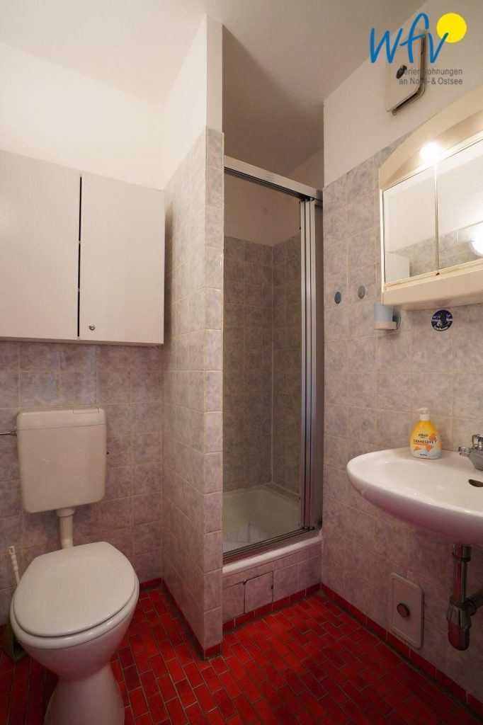 Die Borkumer Ferienwohnung verfügt über einen Wohnraum, ein separates Schlafzimmer, eine Küchenzeile und ein Badezimmer.