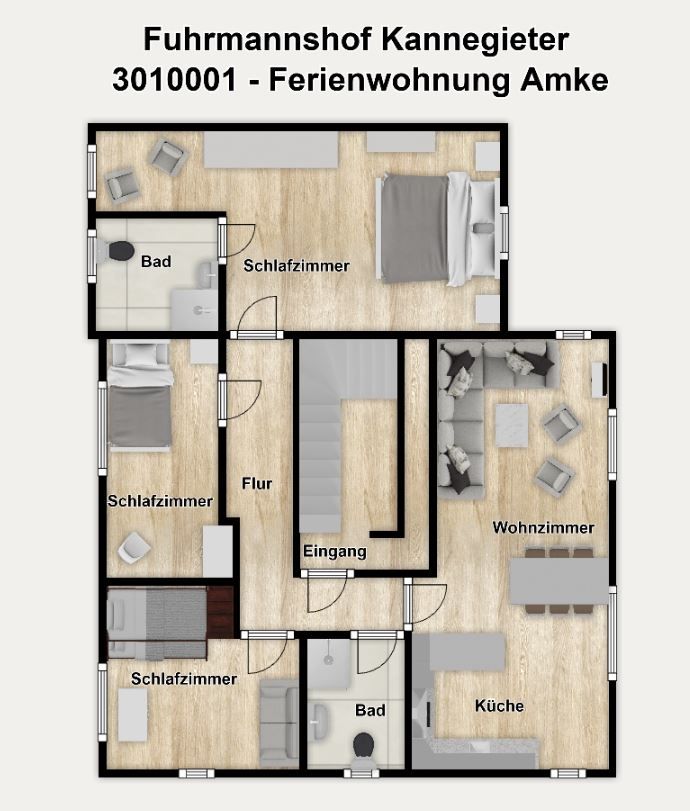 Willkommen im Fuhrmannshof in der Ferienwohnung "Amke", Ihrem Rückzugsort auf der bezaubernden Nordseeinsel Juist! Diese großzügige 76 m² große Ferienwohnung bietet Platz für bis zu 9 Personen und ist damit ideal für Familien, Freundesgruppen oder Paare, die gemeinsam eine erholsame Zeit verbringen möchten....