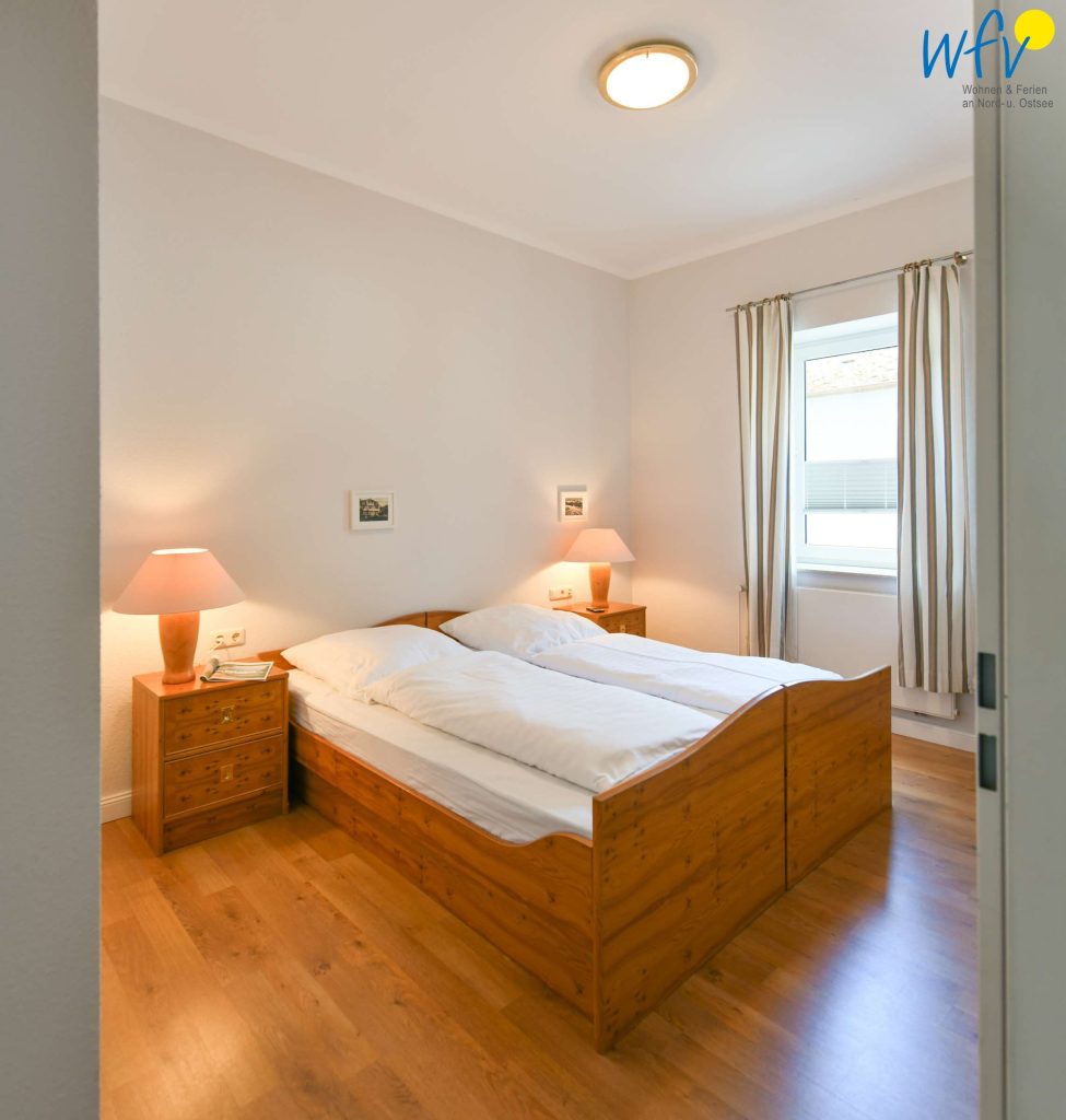 Auf 66 m² Wohnfläche erwarten Sie drei Zimmer – aufgeteilt in einen großzügigen Wohnraum mit Sitzecke, Esstisch und offener Küche und zwei separate Schlafzimmer mit Doppelbett.