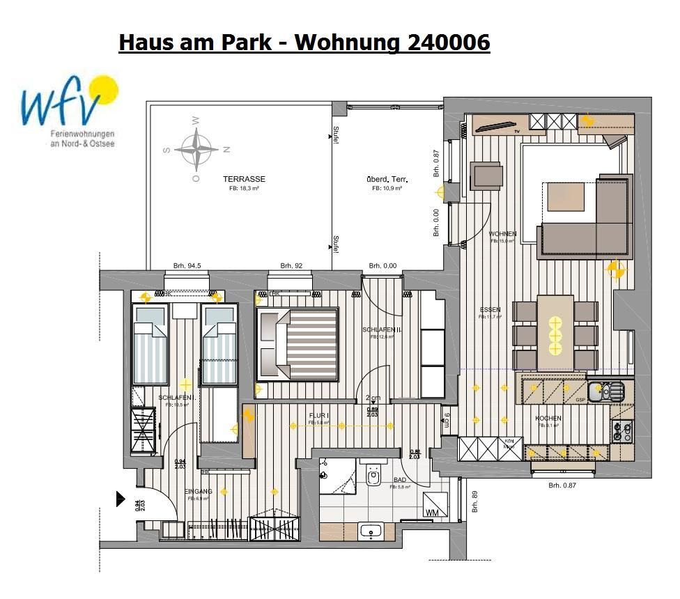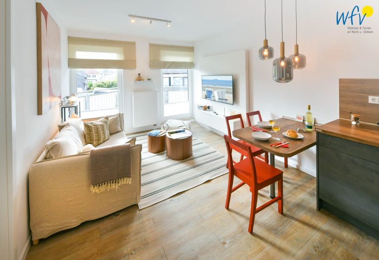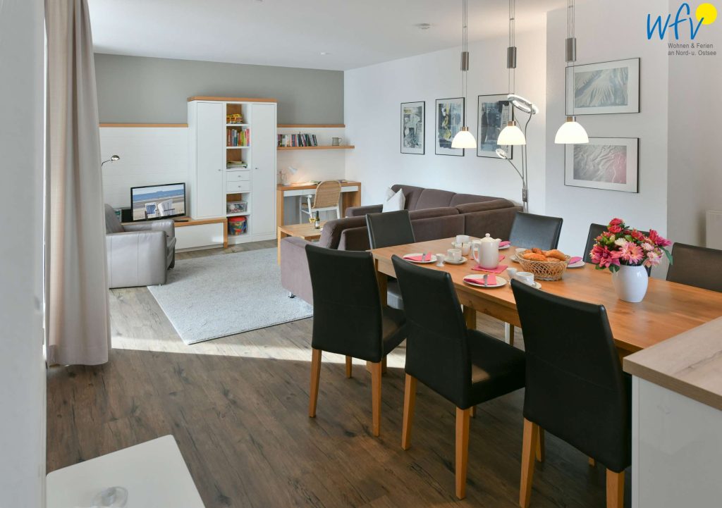 Auf 85 m² Wohnfläche erwartet Sie in der "Ferienwohnung 6" jede Menge Platz, um sich mit der gesamten Familie rundum wohlzufühlen. Freuen Sie sich auf wunderschöne Stunden auf dem sonnigen Balkon! Perfekt, um einfach mal die Seele baumeln zu lassen und die würzige Nordseeluft in vollen Zügen zu genießen...