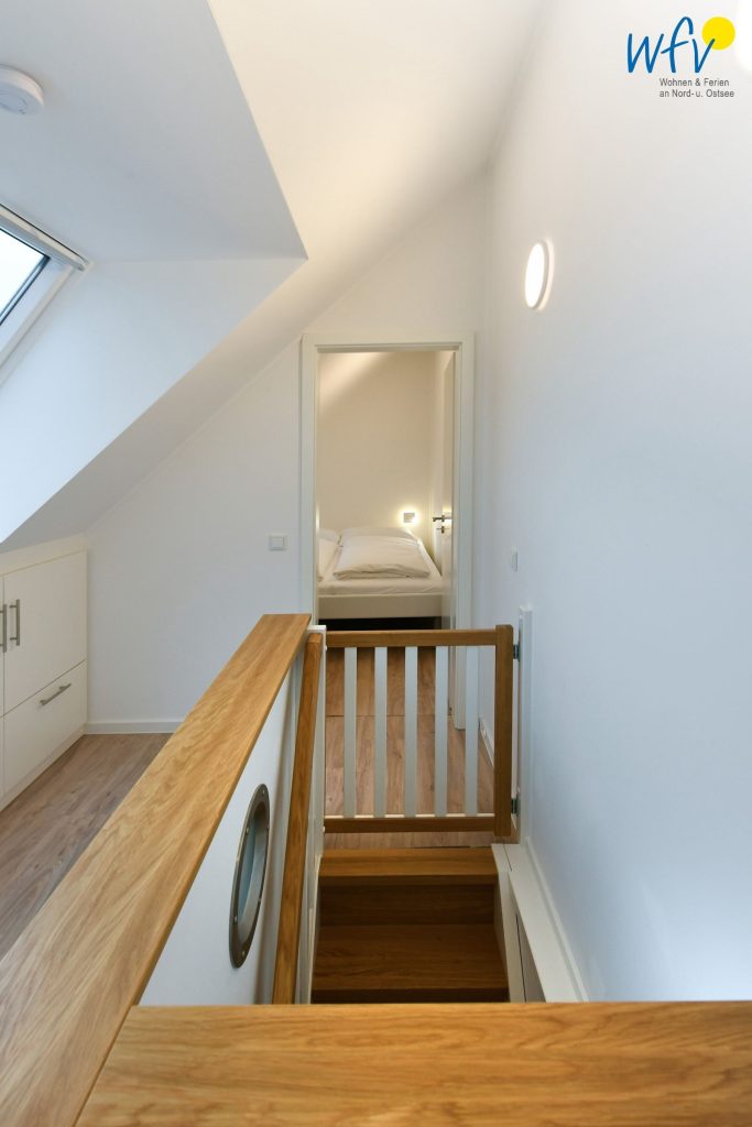 Hinweis: Zum Spitzboden führt eine recht steile Treppe mit geringer Stufentiefe (s. Foto).