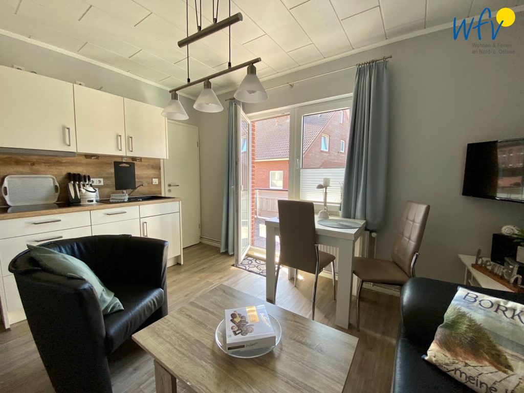 Die hübsche Ferienwohnung "Delphin 2" mit Wohnraum, separatem Schlafzimmer sowie Duschbad und Balkon ist eine Wohlfühloase für entspannte Tage zu zweit oder den Urlaub mit der kleinen Familie (3 Personen).