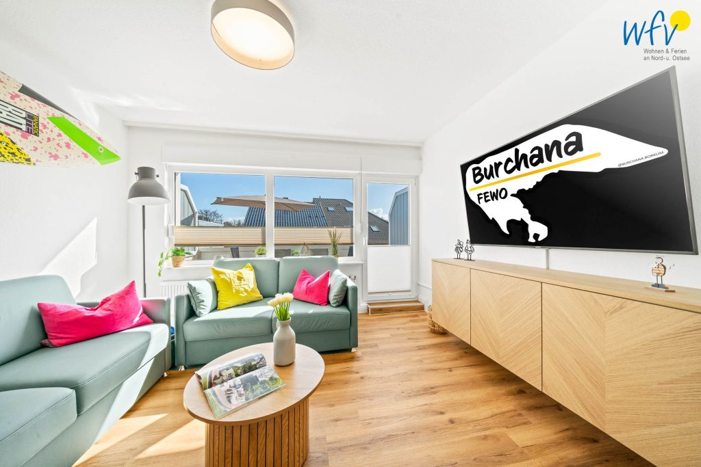 Die "Ferienwohnung Burchana" - ein früherer Name für die schöne Insel Borkum - wurde komplett renoviert und vereint nun maritime Inselatmosphäre mit modernem Ambiente. Besondere Accessoires und Wandbehänge sorgen für Gemütlichkeit und das entsprechende Nordseegefühl in Ihrem Urlaub am Meer.