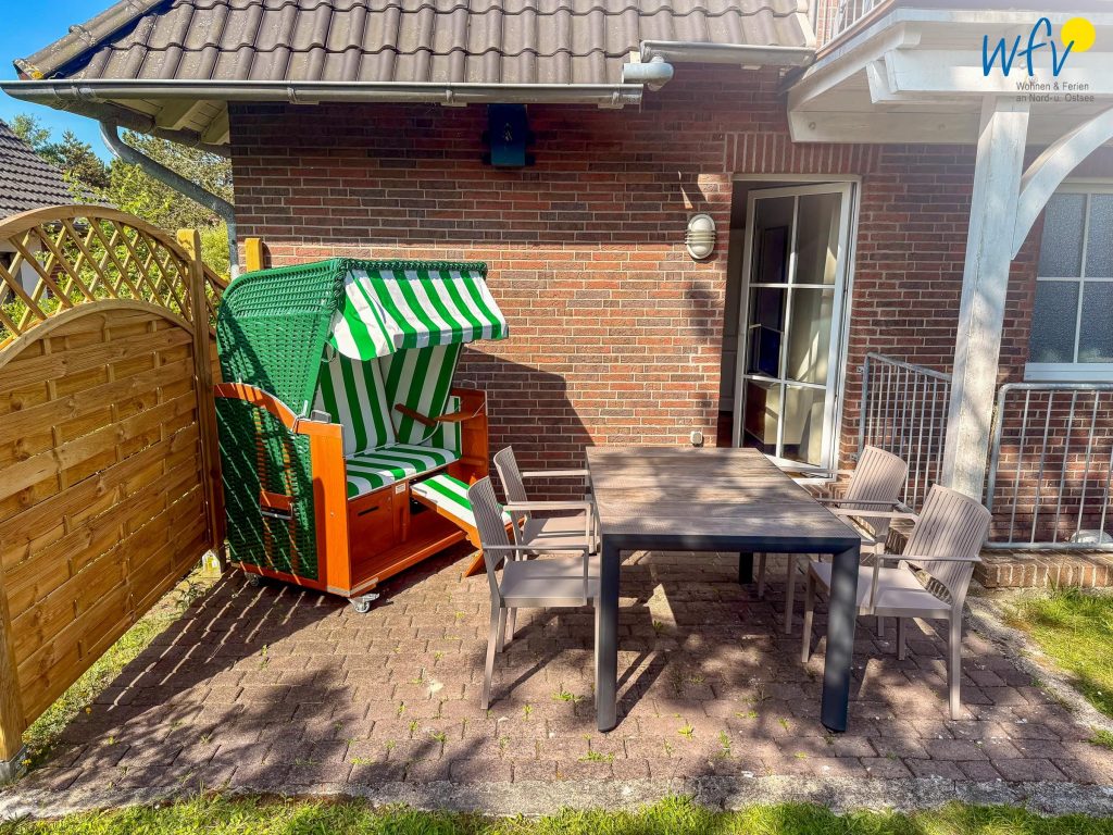 Träumen Sie von Nordseeluft und warmen Sonnenstrahlen? Die Richtung Osten liegende Ferienwohnung besitzt eine wunderschöne Terrasse mit Strandkorb für erholsame Stunden. Hier ganz in Ruhe ein gutes Buch zu...
