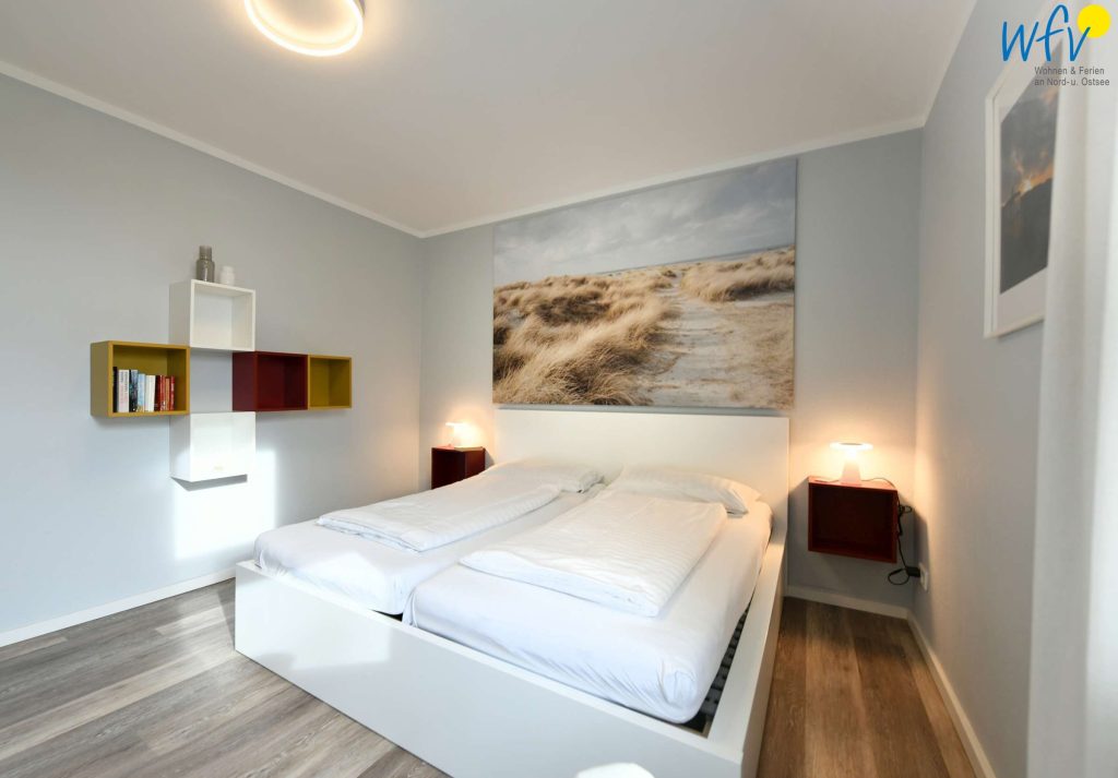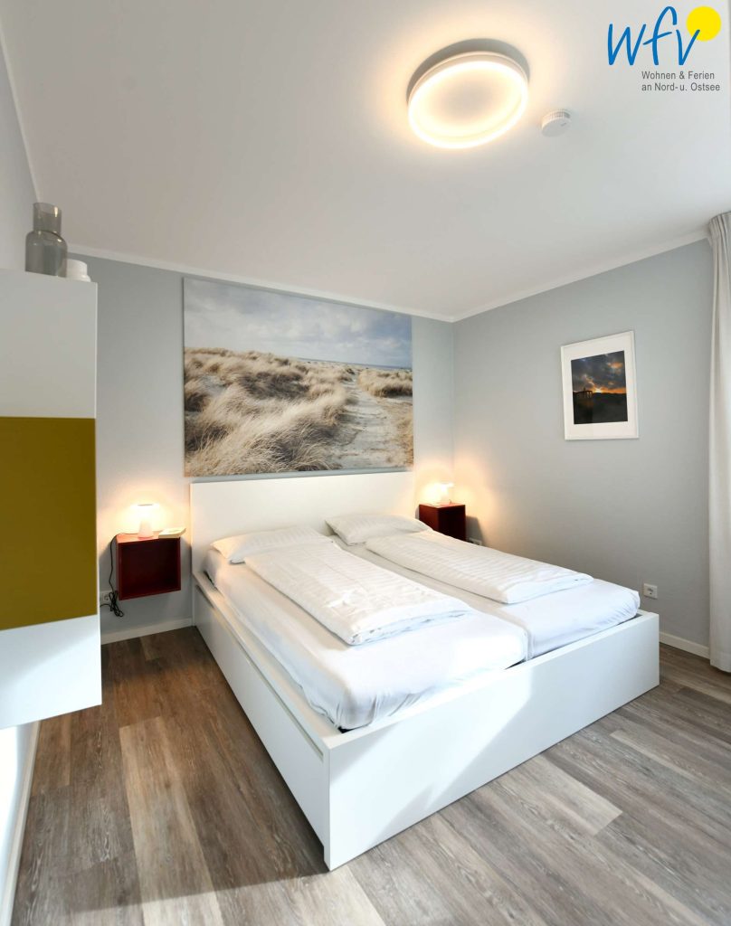 Die Ferienwohnung "Wilma" auf Juist verfügt über ein separates Schlafzimmer mit Doppelbett (1,80 m x 2 m). Zwei weitere Schlafmöglichkeiten bietet die bequeme Schlafcouch im Wohnzimmer.