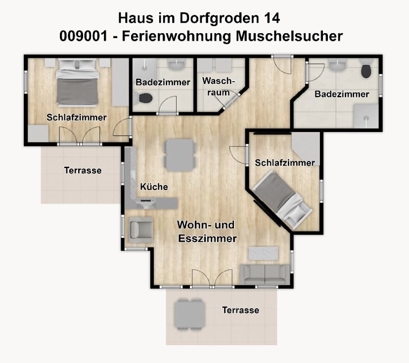 Zwei separate Schlafzimmer, zwei Bäder und eine Terrassen - das sind beste Voraussetzungen für Traumferien auf Ihrer Lieblingsinsel! Unsere Ferienwohnung "Muschelsucher" ist ein wunderbarer Ort für den Urlaub mit der Familie oder mit Freunden!