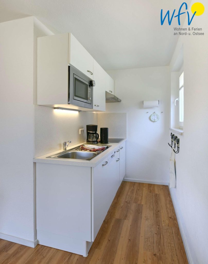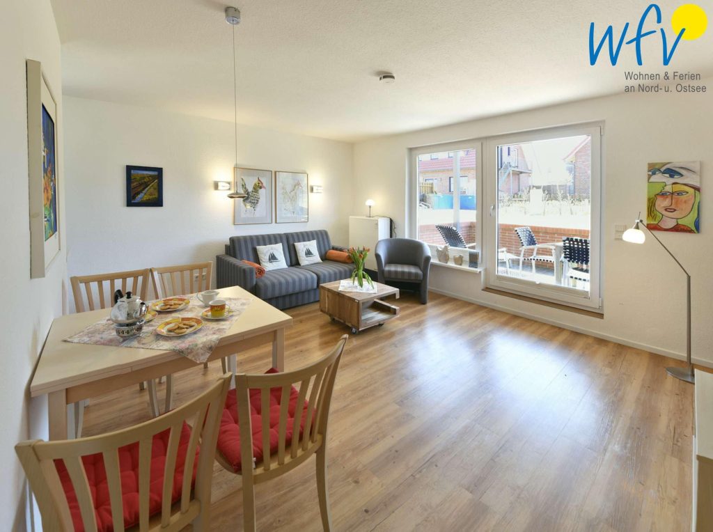 Ein geräumiges Wohnzimmer mit Couchecke, Essbereich und offener Küchenzeile, ein separates Schlafzimmer, ein Duschbad und eine sonnige...