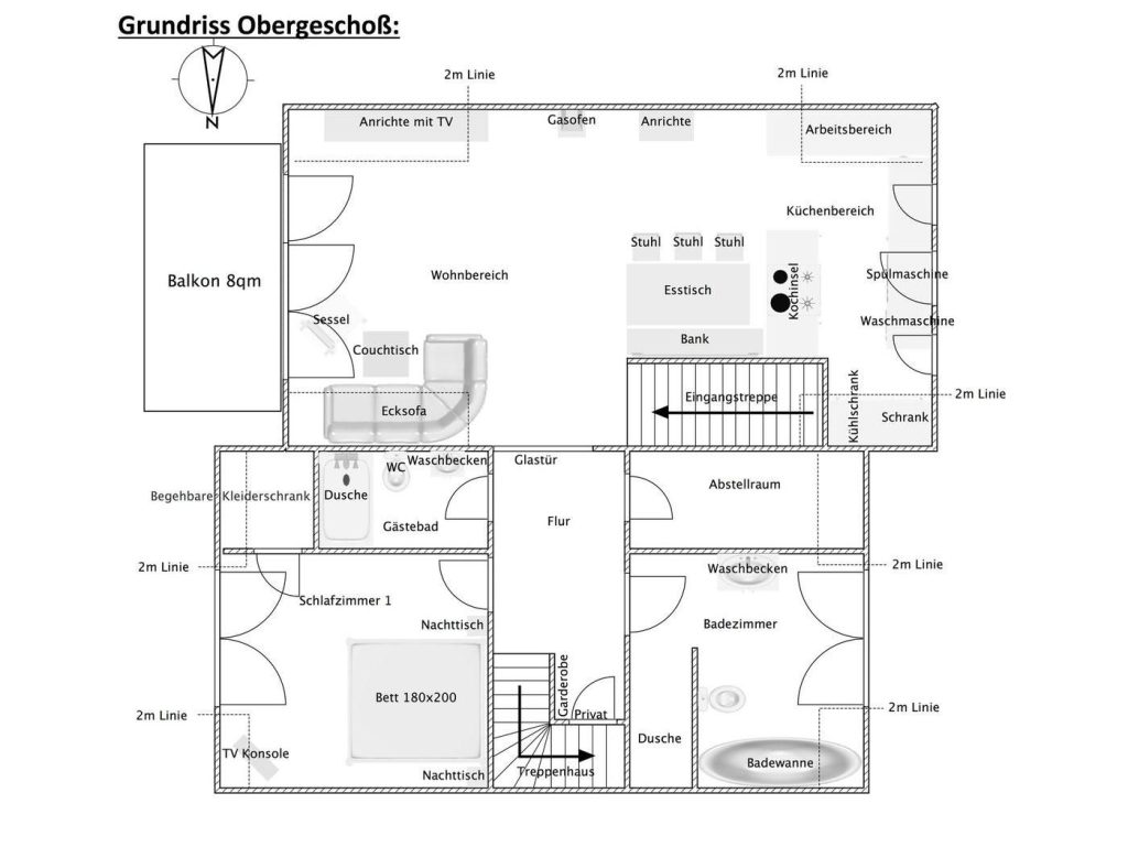 Die Juister Ferienwohnung erstreckt sich über zwei Etagen und bietet somit eine sehr vorteilhafte Raumaufteilung. In der ersten Etage befindet sich ein großzügiger Wohnraum mit angrenzender Küche und Essbereich, ein separates Schlafzimmer, zwei Badezimmer, ein Abstellraum, zwei Garderoben und ein Balkon. Im Dachgeschoss erwartet Sie ein weiterer separater Schlafraum mit vier Stapelbetten.