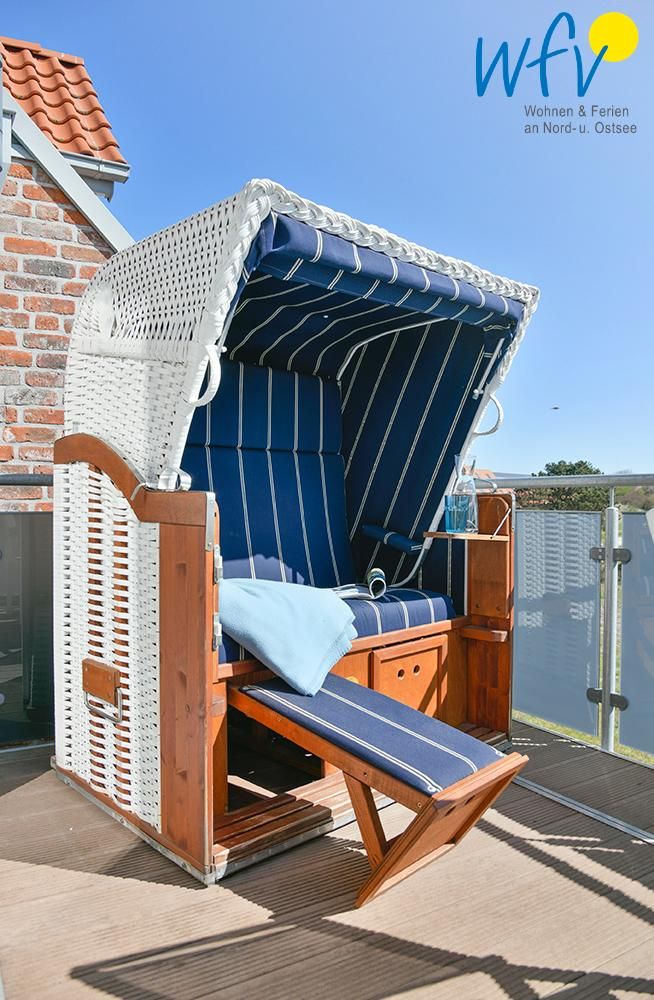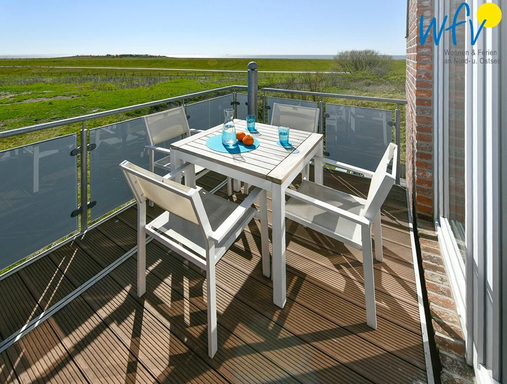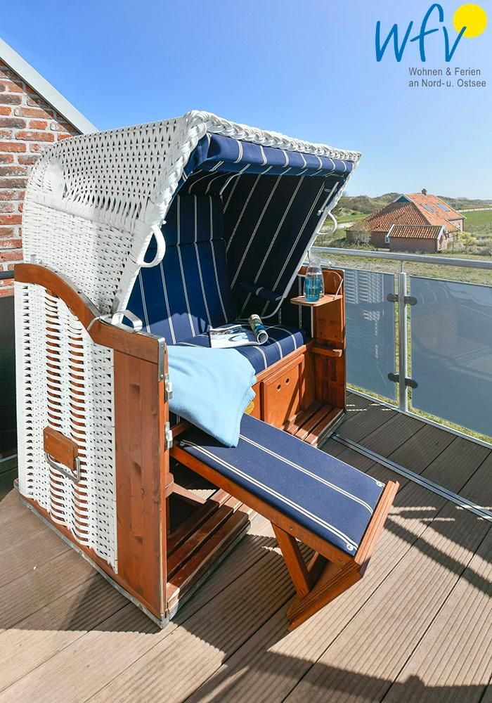 Auf dem herrlichen Balkon wartet bereits ein eigener Strandkorb auf Sie! Hier gemütlich ein gutes Buch zu lesen oder sich von der Sonne wärmen zu lassen, ist pure Erholung. Und auch die Aussicht lässt Sie unvergessliche Urlaubsmomente erleben: Vom Balkon aus haben Sie einen freien Blick auf die Nordsee bis hin zur ostfriesischen Küste.