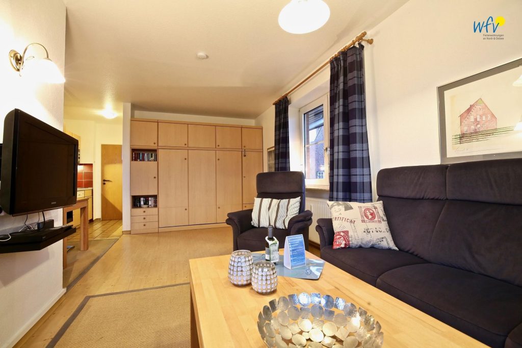 Zu erholsamen Stunden am Abend lädt der gemütliche Wohnraum ein, der mit einer bequemen Sitzecke, modernem TV, DVD-Player und kleiner Musikanlage ausgestattet ist. Hier können ganz in Ruhe gute Filme schauen, Musik hören oder von Ihrem Smartphone aus im Internet surfen - in der Ferienwohnung empfangen Sie kostenlos freies WLAN. Auch ein Telefon ist vorhanden.