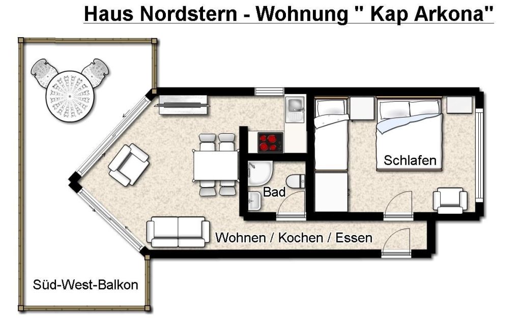 Unsere gemütliche Ferienwohnung "Kap Arkona" mit sonnigem Süd-West-Balkon garantiert entspannte Urlaubstage in sehr schöner Lage!