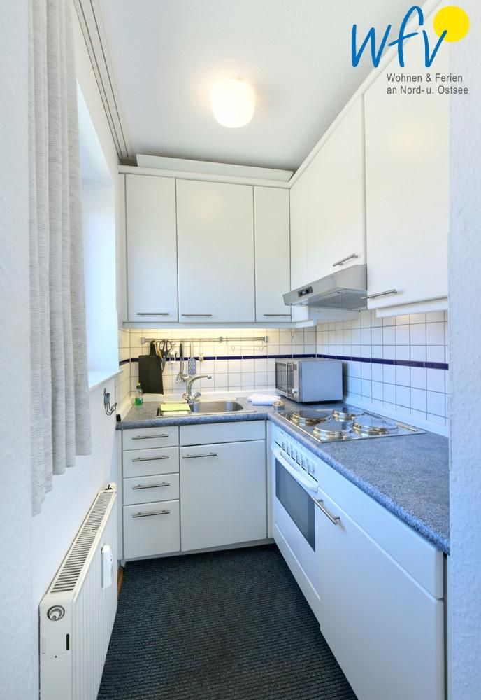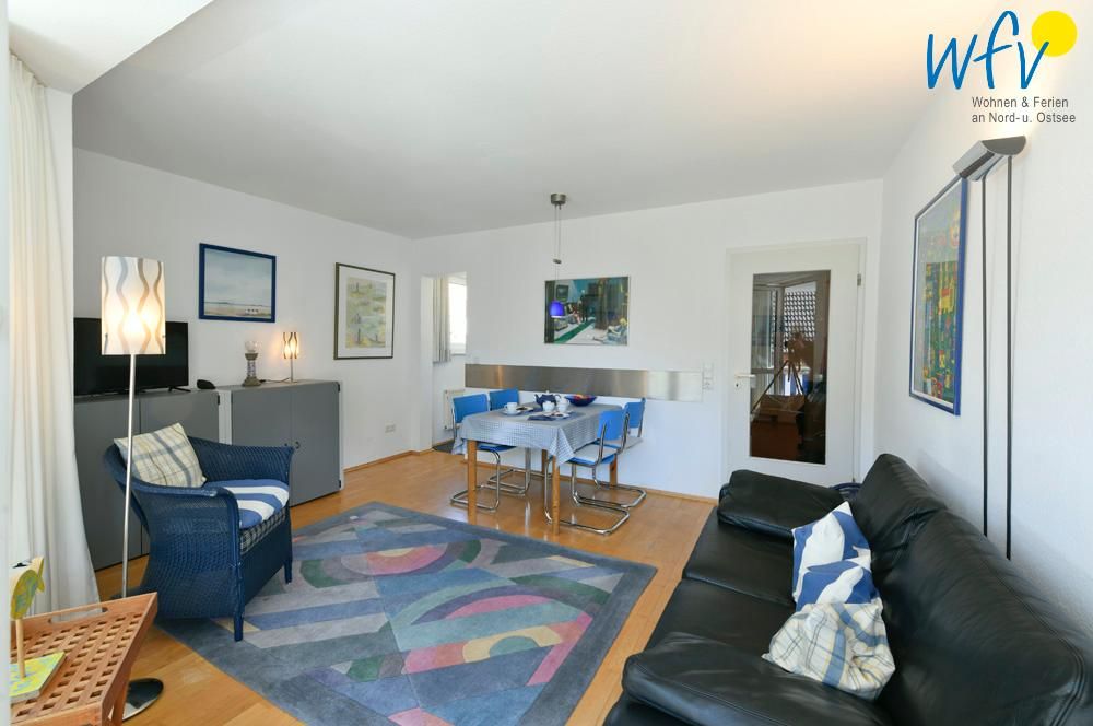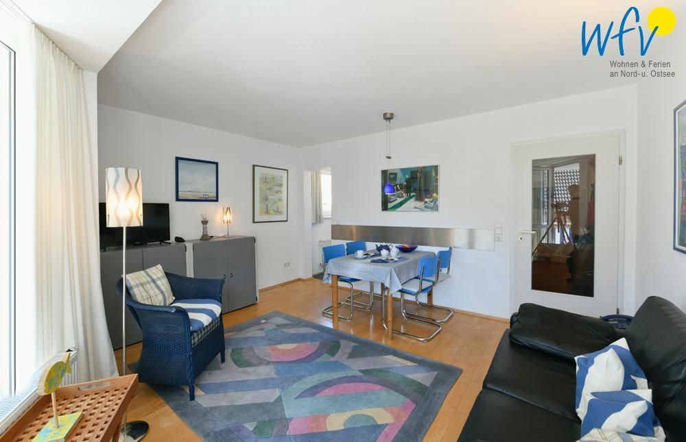 Die gute Raumaufteilung mit Wohnraum, Küchennische, separatem Schlafzimmer und Duschbad bietet Platz für bis zu drei Personen. Eine breite Fensterfront, hochwertiger Parkettfußboden im Wohnraum...