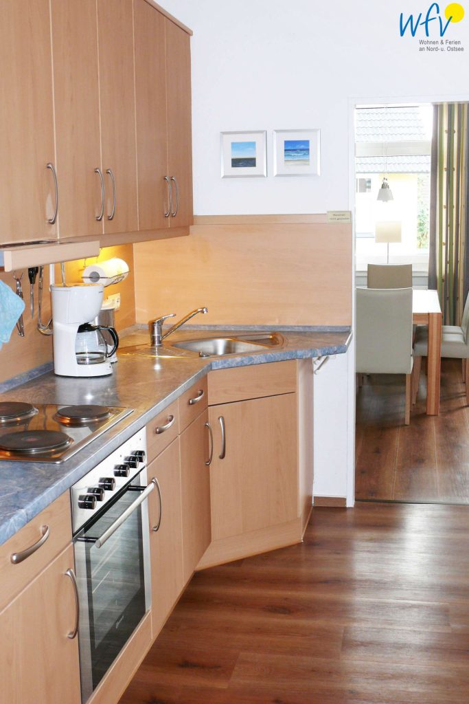 Bequeme Betten in jedem der beiden mit einem großen Schrank ausgestatteten Schlafzimmern (superleise), eine Küche die alle Wünsche erfüllt.(Backofen, Eierkocher, Toaster, Wasserkocher, Kaffeemaschine, satt Töpfe, Pfannen, Tassen, Teller, Gläser, Schüsseln und und und)