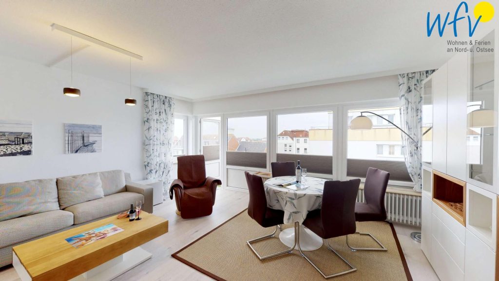 Ahoi und herzlich willkommen in unserer komfortablen "Ferienwohnung 44" im "Haus Panorama" - direkt am Wangerooger Badestrand. Auf dem großzügigen Balkon Richtung Westen genießen Sie wunderschöne Abendsonne und einen eingeschränkten Meerblick nach Norden. Der Strand und das Meer sind nur einen Katzensprung entfernt!