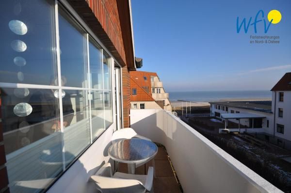 Unsere Ferienwohnung mit sonnigem Balkon über den Dächern von Wangerooge wird Sie begeistern! Ähnlich einer Penthousewohnung liegt das kleine, schicke Nichtraucherappartement (40 m²) zurückversetzt auf dem Dachgeschoss (3. OG) des terrassenförmig angelegten „Haus Passat“ - in unmittelbarer Nähe zu Strand und...