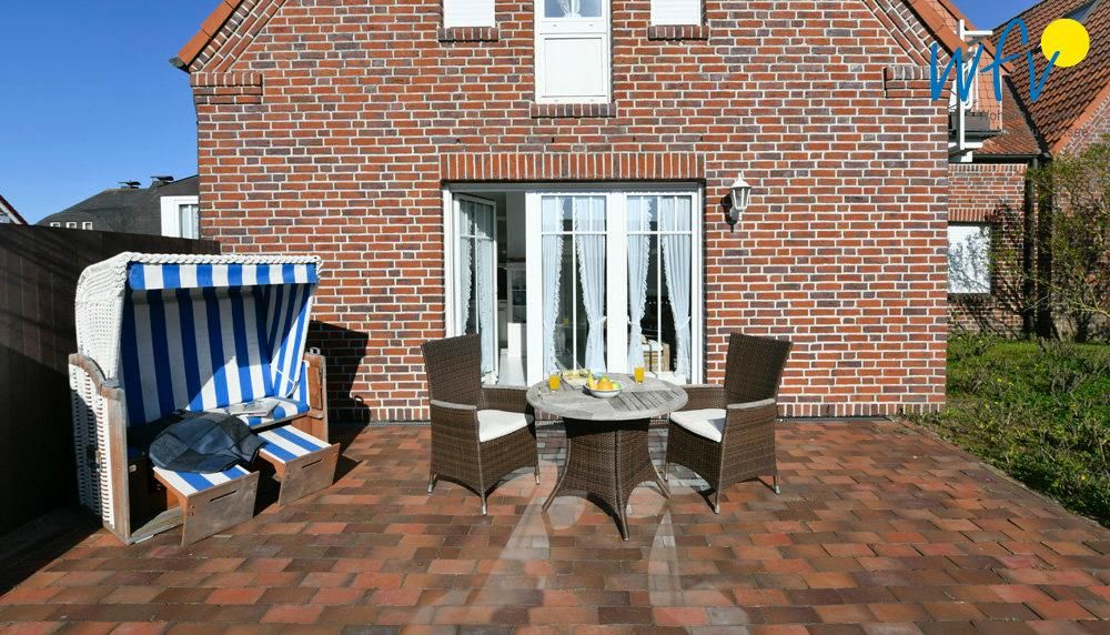 Schöne ruhige Wohnung mit toller Terrasse. Gartenmöbel, Sonnenschirm und Strandkorb. Sehr sauber und gemütlich. Schöne Lage am Deich .
