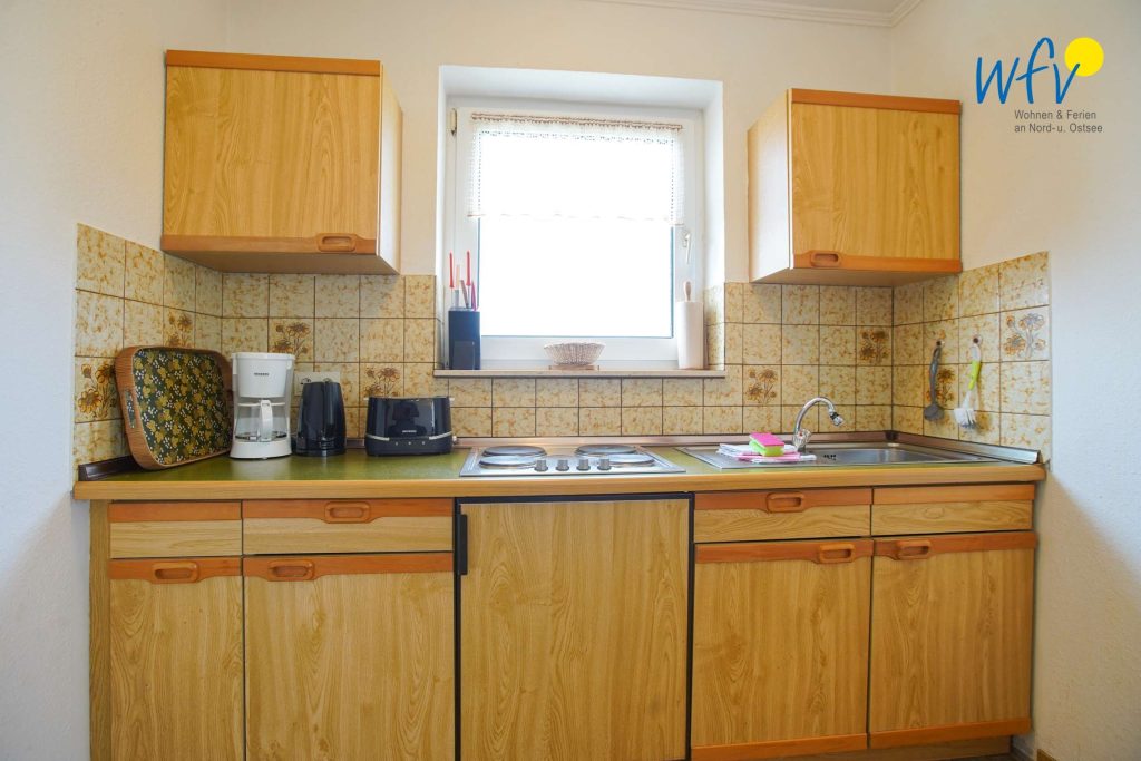 Am Essplatz mit schönem Lichteinfall starten Sie ruhig und entspannt in den Urlaubstag. Kaffee, Toast und Eier lassen sich bequem in der Küchenzeile mit 4-Plattenherd, Mikrowelle und diversen Kleingeräten zubereiten. So können Sie gemütlich den bevorstehenden Urlaubstag auf Borkum planen - mit Fahrradtour, Strandspaziergang oder Badetag.