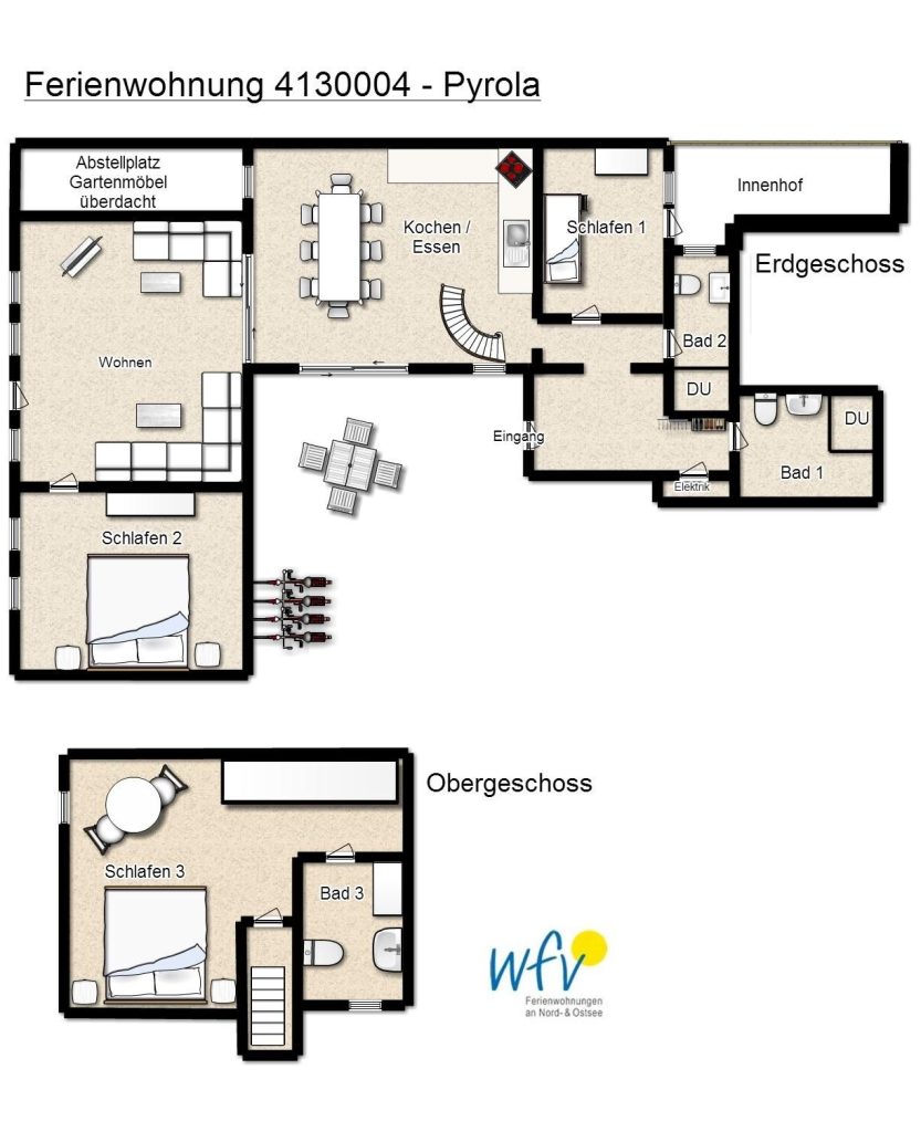 Auf zwei Etagen (EG und OG) können Sie sich mit bis zu sechs Personen wohnlich einrichten. Die...