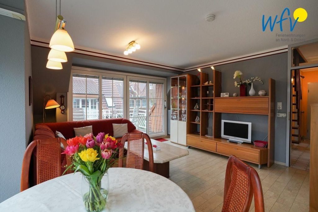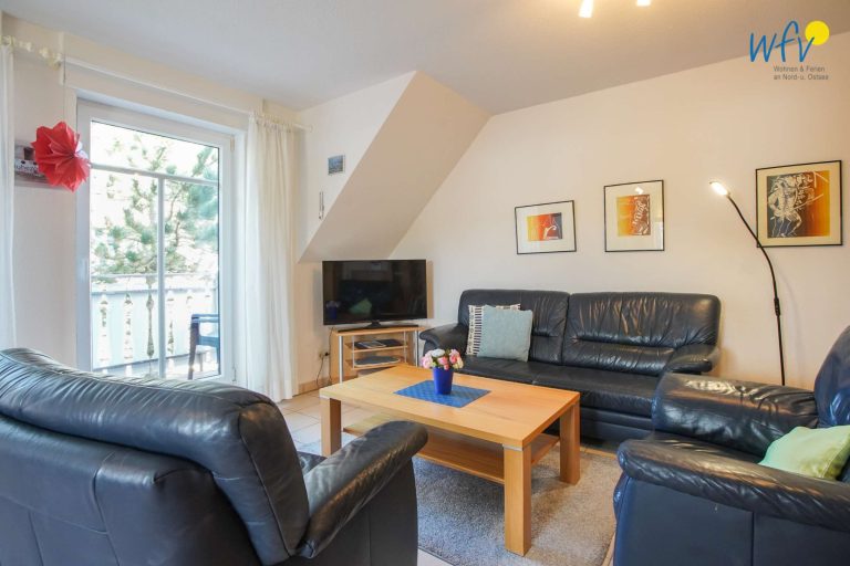 Die Ferienwohnung bietet Ihnen Platz für vier Personen. Sie verfügt über einen Wohnraum mit integrierter Küche, zwei separate Schlafzimmer, ein Badezimmer mit Dusche sowie über einen Südbalkon.