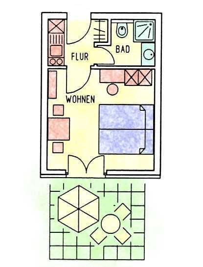 Eine optimale Raumaufteilung mit Schlafnische, Essecke und Küchenzeile macht die...