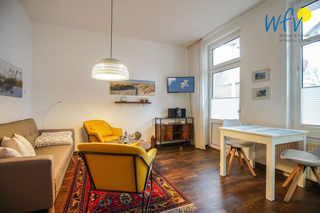 Ein ausgiebiges Ferienfrühstück, sonnige Lesestunden oder gemütliche Filmabende - verwöhnen Sie sich mit herrlich erholsamen Urlaubtagen in unserer Ferienwohnung auf Borkum! Sie verfügt über einen Wohnraum mit...