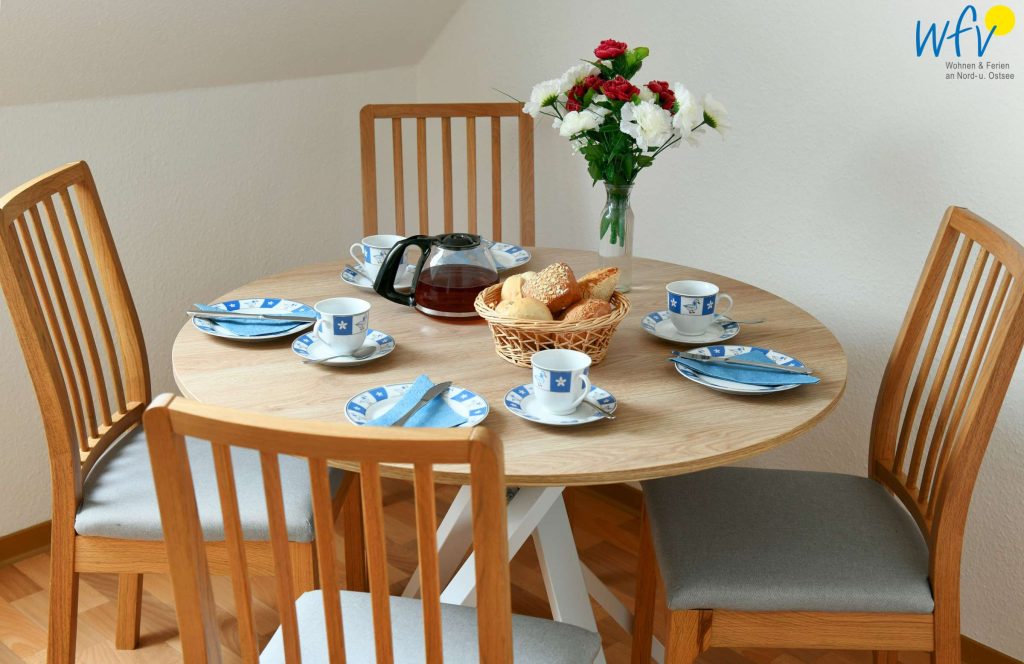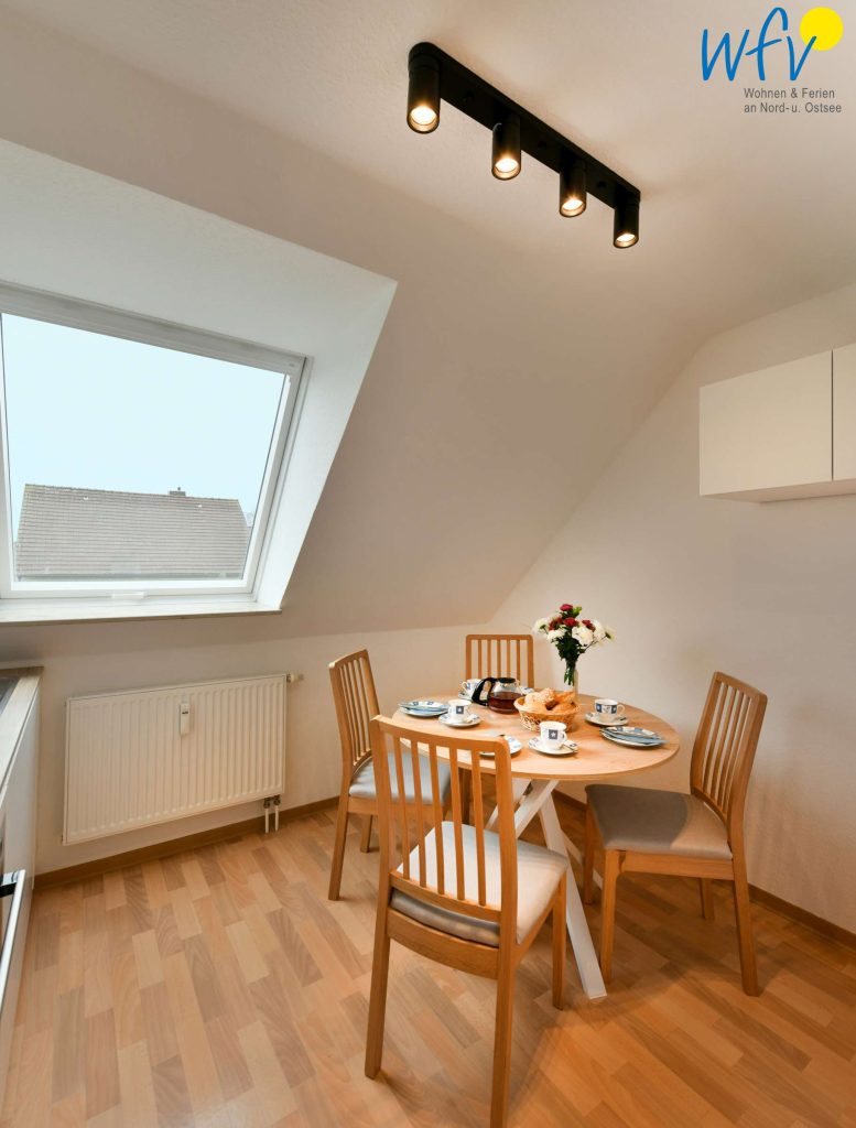Genießen Sie bereits am Morgen wärmende Sonnenstrahlen und frische Nordseeluft! Der möblierte Ostbalkon lädt zu einem Ferienfrühstück bei Sonnenaufgang ein! Mit Blick auf die Wangerooger Umgebung bekommt man direkt Lust, einen erlebnisreichen Urlaubstag zu planen!