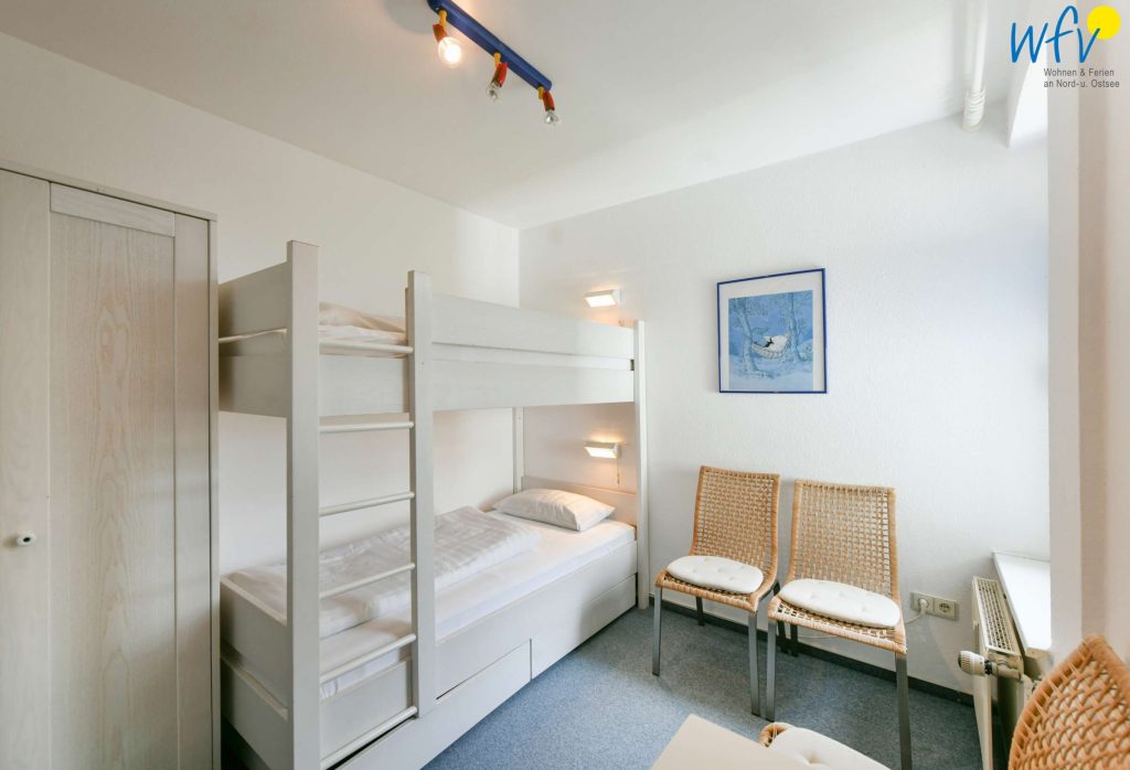 Drei separate Schlafzimmer ermöglichen Ihnen bei einem Urlaub mit mehreren Personen sehr angenehme Aufteilungsmöglichkeiten. Im unteren Bereich befindet sich ein Kinderschlafzimmer mit Etagenbett und kleinem Schreibtisch, im oberen Wohnbereich liegen zwei weitere Schlafzimmer - jeweils mit Doppelbett.