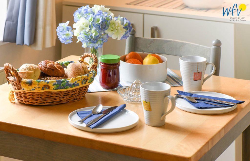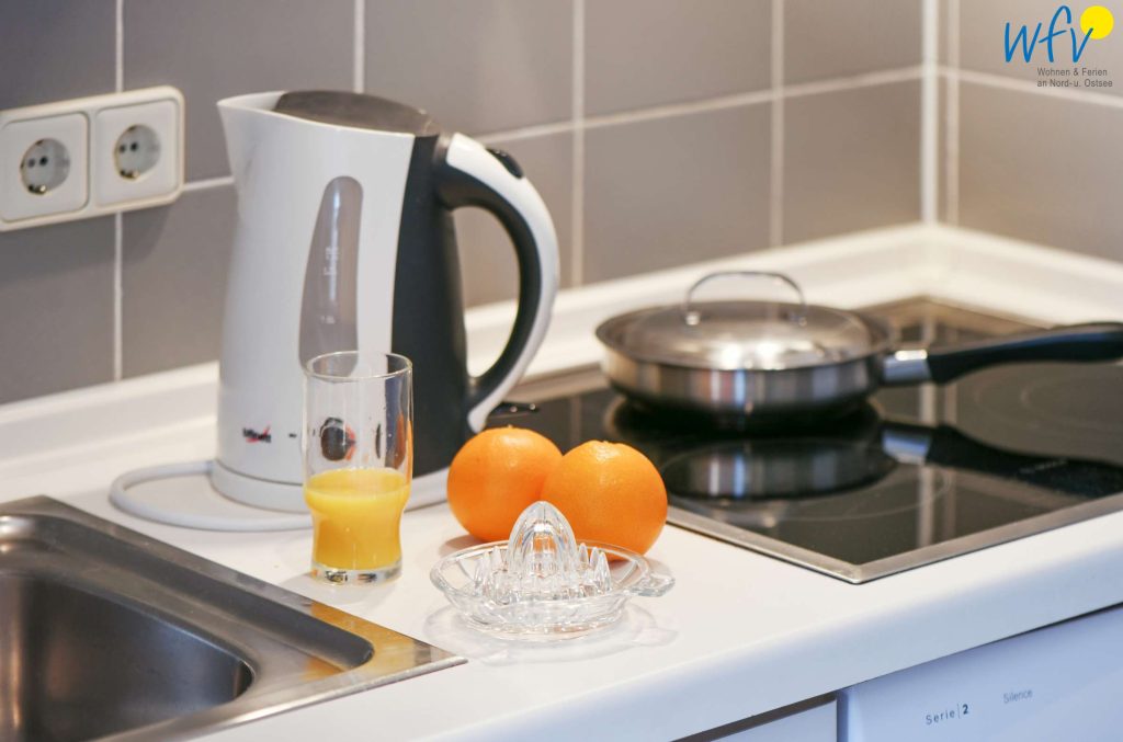 Die offene Küchenzeile ist u.a. mit einem Ceranherd, einer Spülmaschine und diversen Kleingeräten ausgestattet. So können Sie sich in Ihrem Urlaub auf Wangerooge bequem selbst verpflegen.