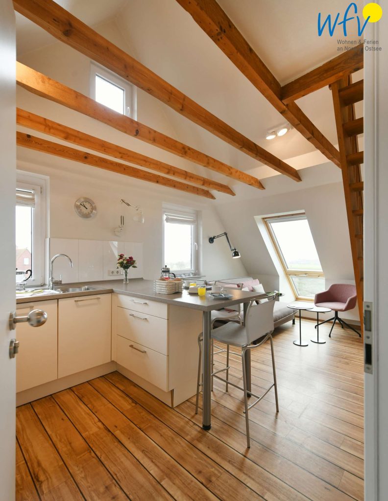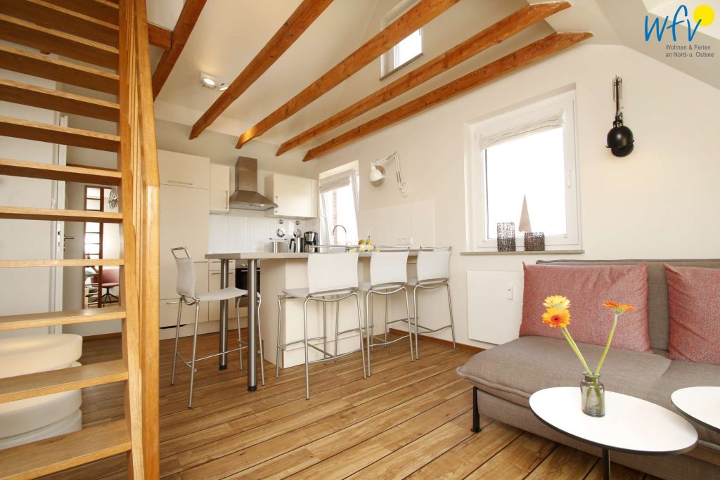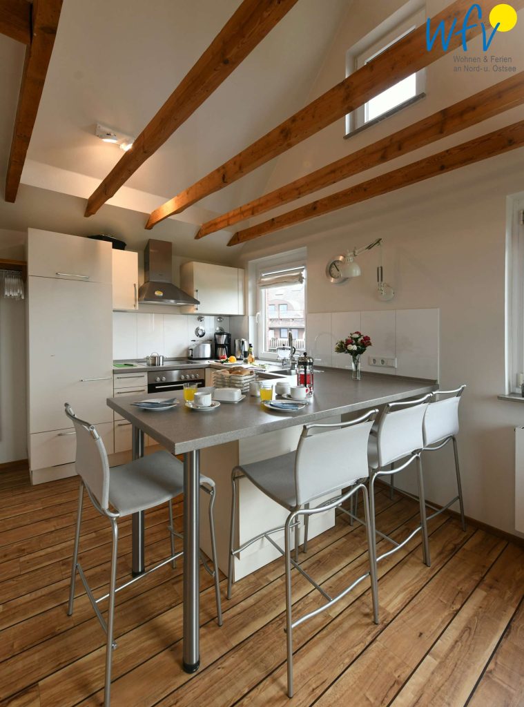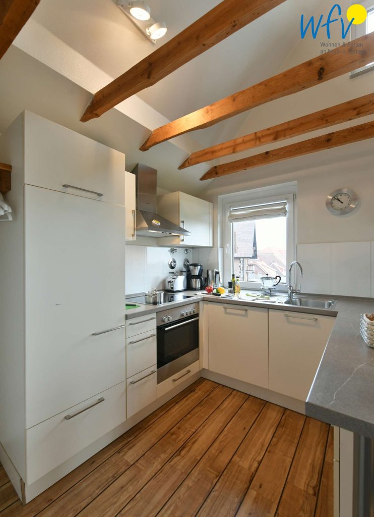 Sehr nette kleine Wohnung. Die Küche läßt keine Wünsche offen, sie ist sehr gut ausgestattet. Toller Blick in Richtung Wattenmeer und Hafen