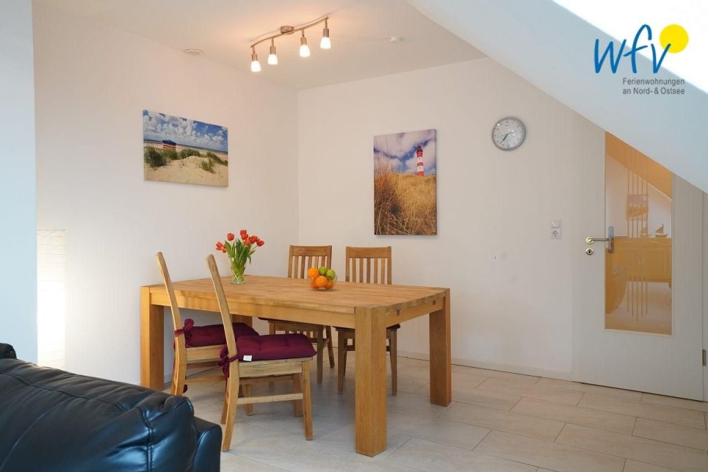 Die Einrichtung ist praktisch. Es ist genügend Geschirr vorhanden. Leider ist die Terrasse und Wiese nicht richtig von der anderen Hälfte getrennt, was einen abhängig von der Rücksichtnahme der anderen DHH macht. Bei der oberen Duschkabine hakt die eine Glasseite aus, lebensgefährlich. Ansonsten schöne Raumaufteilung und wir mögen auch die Lage. Der Service von Wfv ist schnell und flexibel bei Anruf. Allerdings sollten die Mängel VOR unsere Ankunft behoben werden. Wir würden hier wieder buchen, aber explizit nach neuer Duschkabine fragen. Es war ein schöner Urlaub :-)
