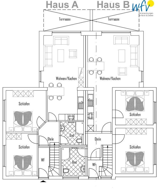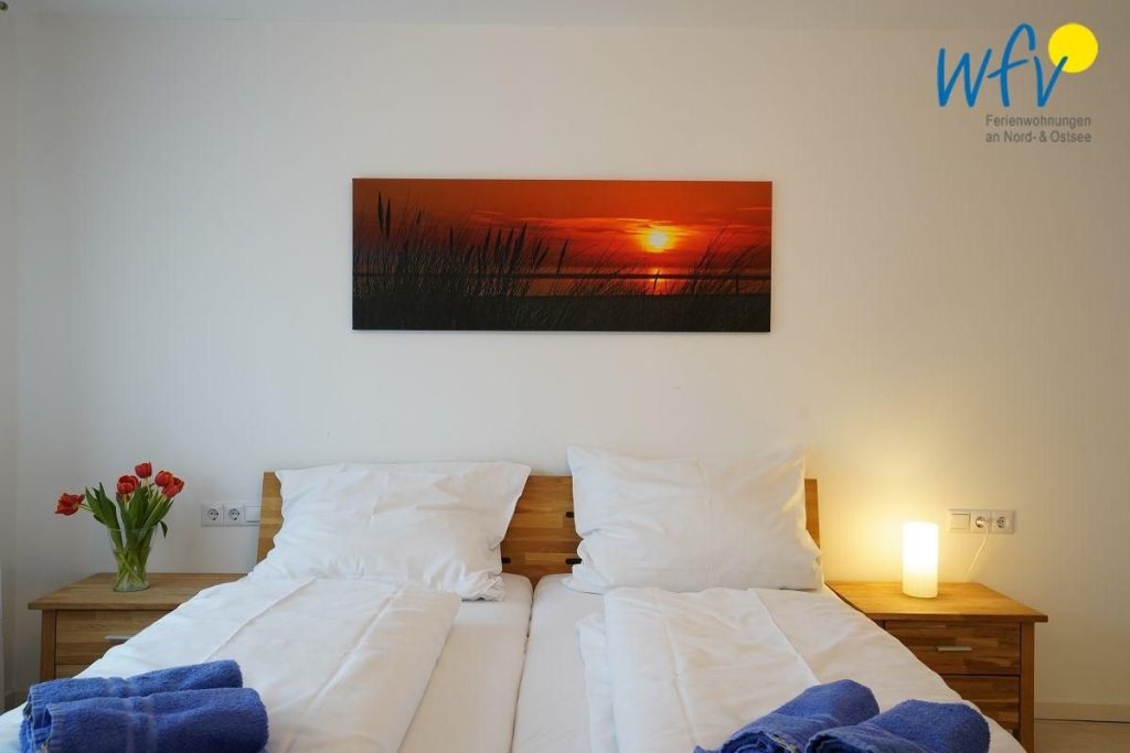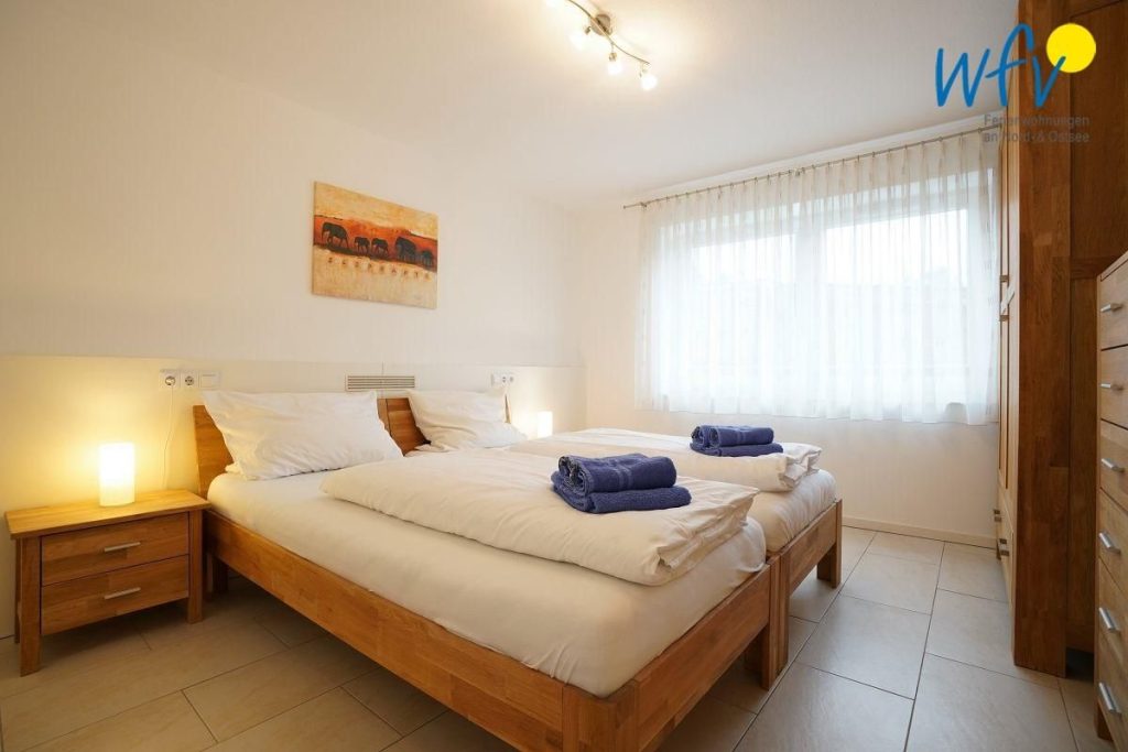 Die zwei separaten Schlafzimmer der Borkumer Ferienwohnung sind jeweils mit einem Doppelbett ausgestattet. Große Kleiderschränke...